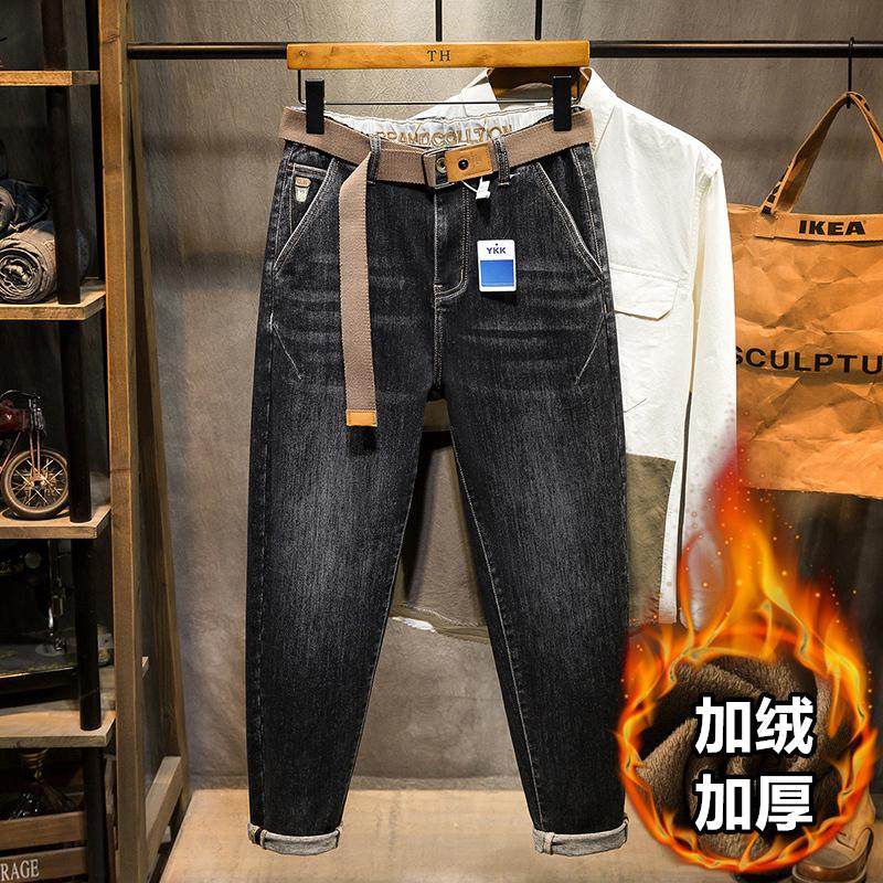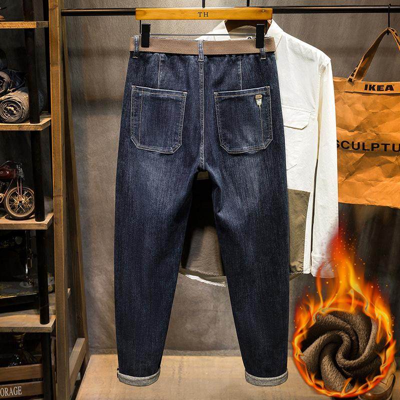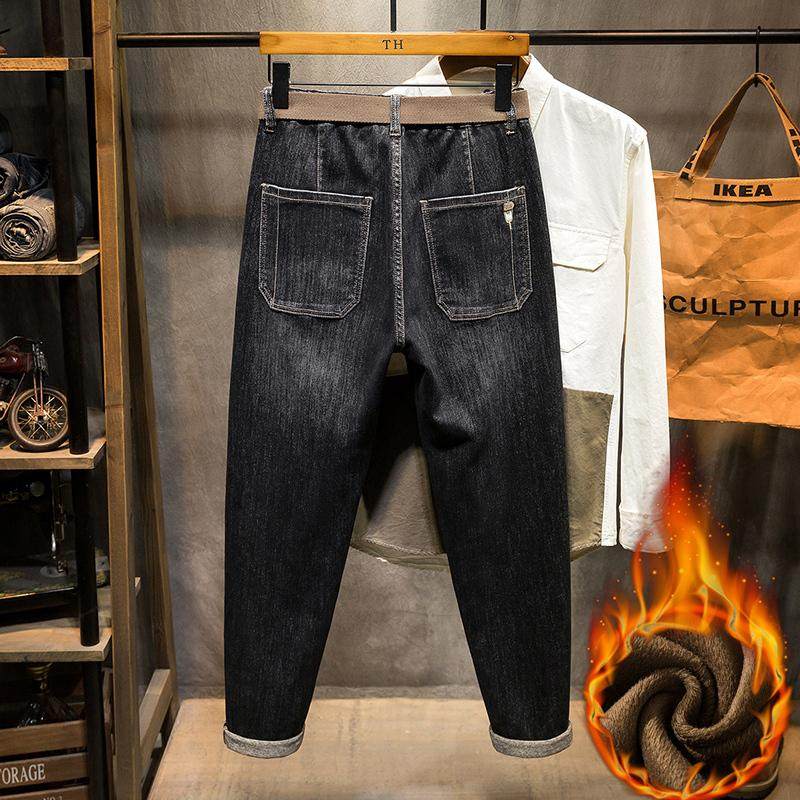 加绒加厚高端牛仔裤男冬季胖子肥佬加肥加大码宽松弹力小脚长裤潮