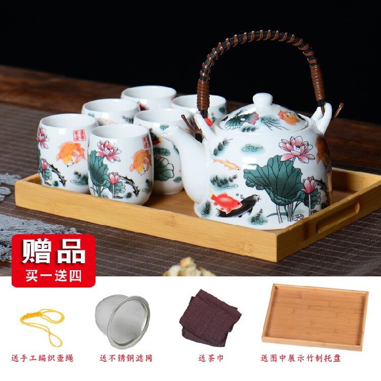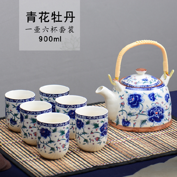 提梁壶复古青花陶瓷带过滤家用茶具套装瓷茶壶茶杯大容量茶具套装
