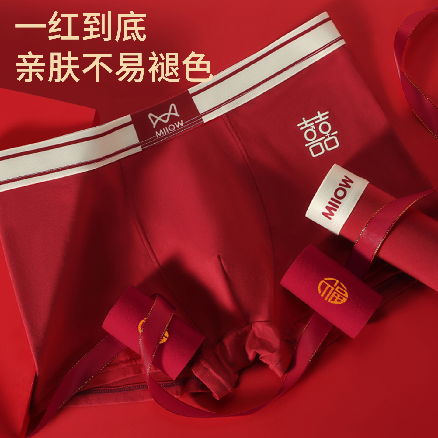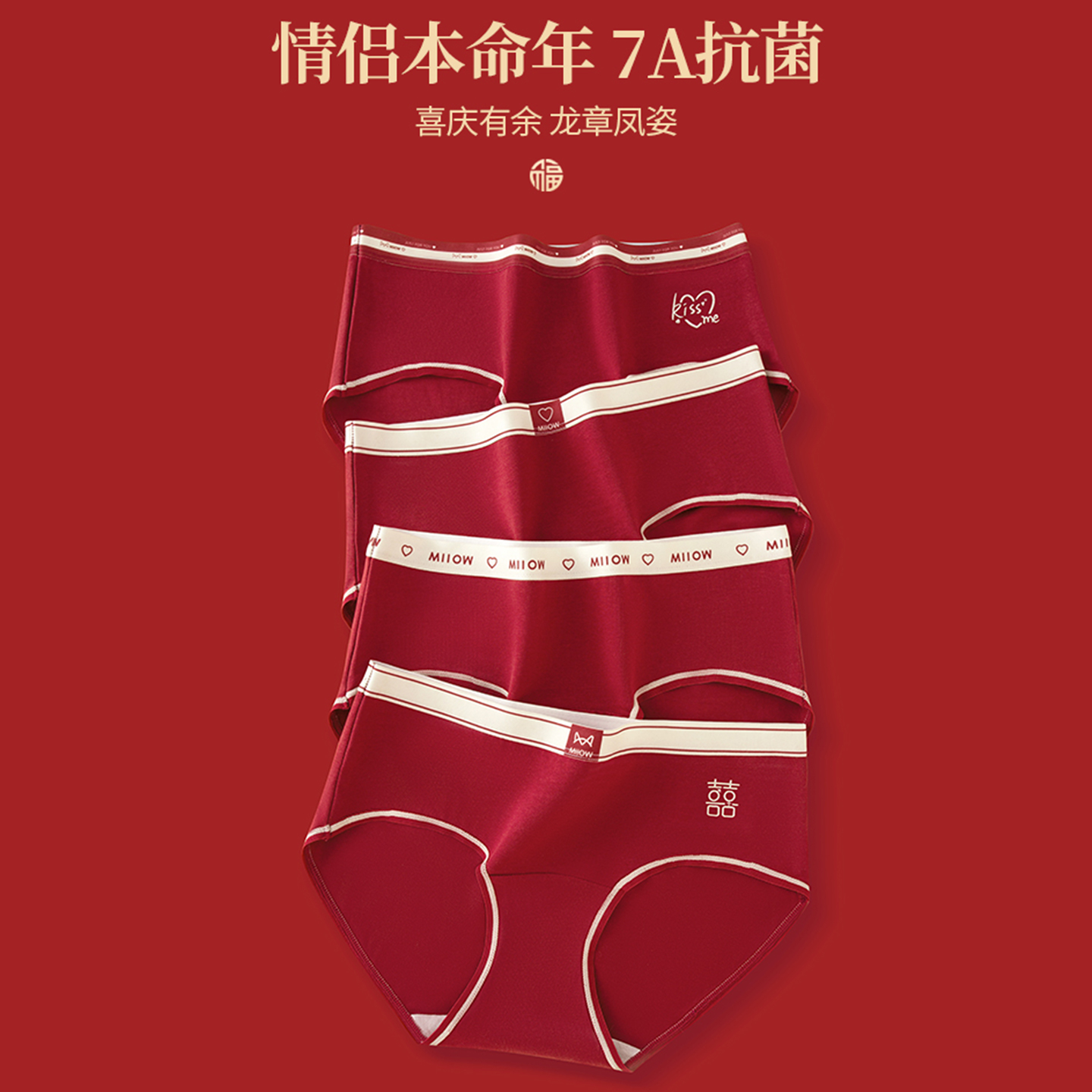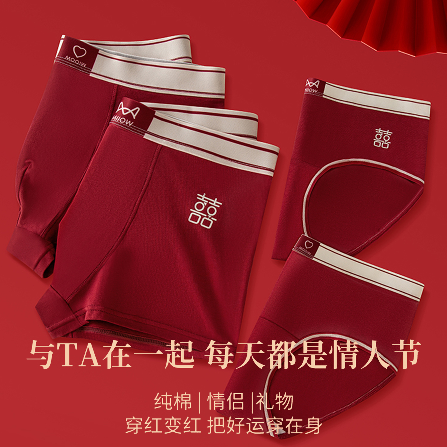猫人本命年红色内裤情侣结婚一对男士纯棉抗菌男女生新婚平角短裤