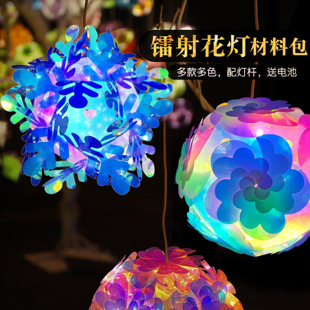 灯笼镭射炫彩花灯手工diy材料包装饰儿童手提2025年新款
