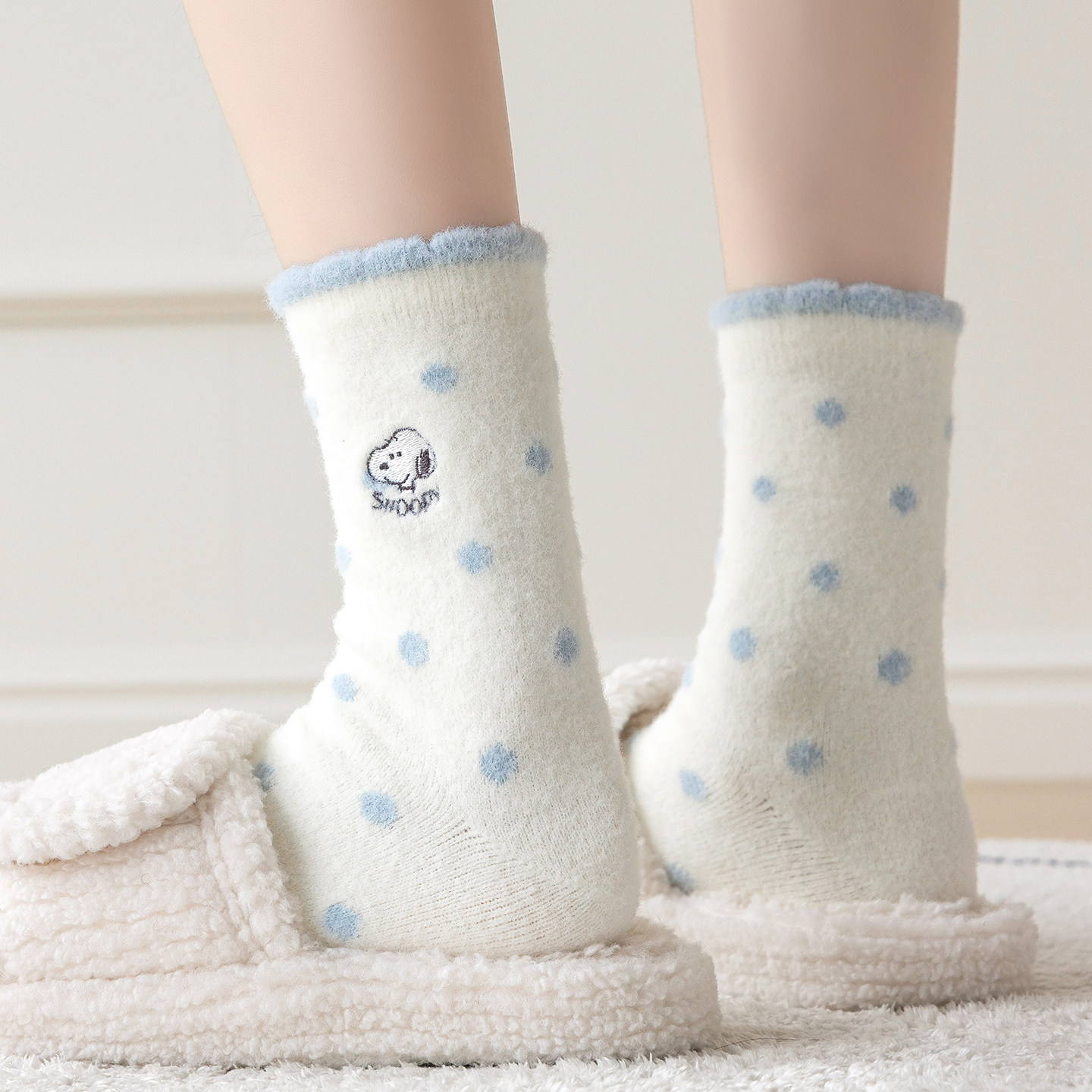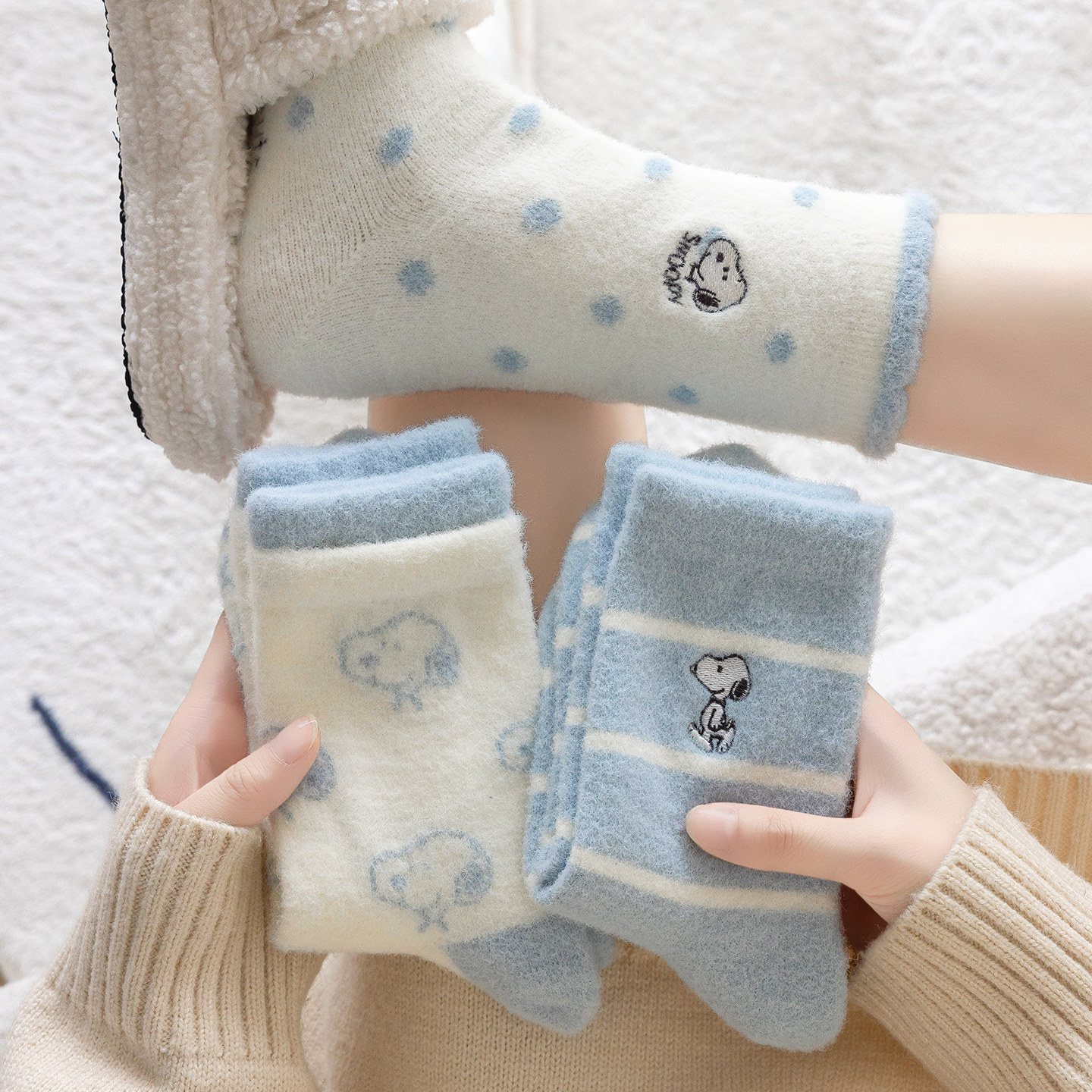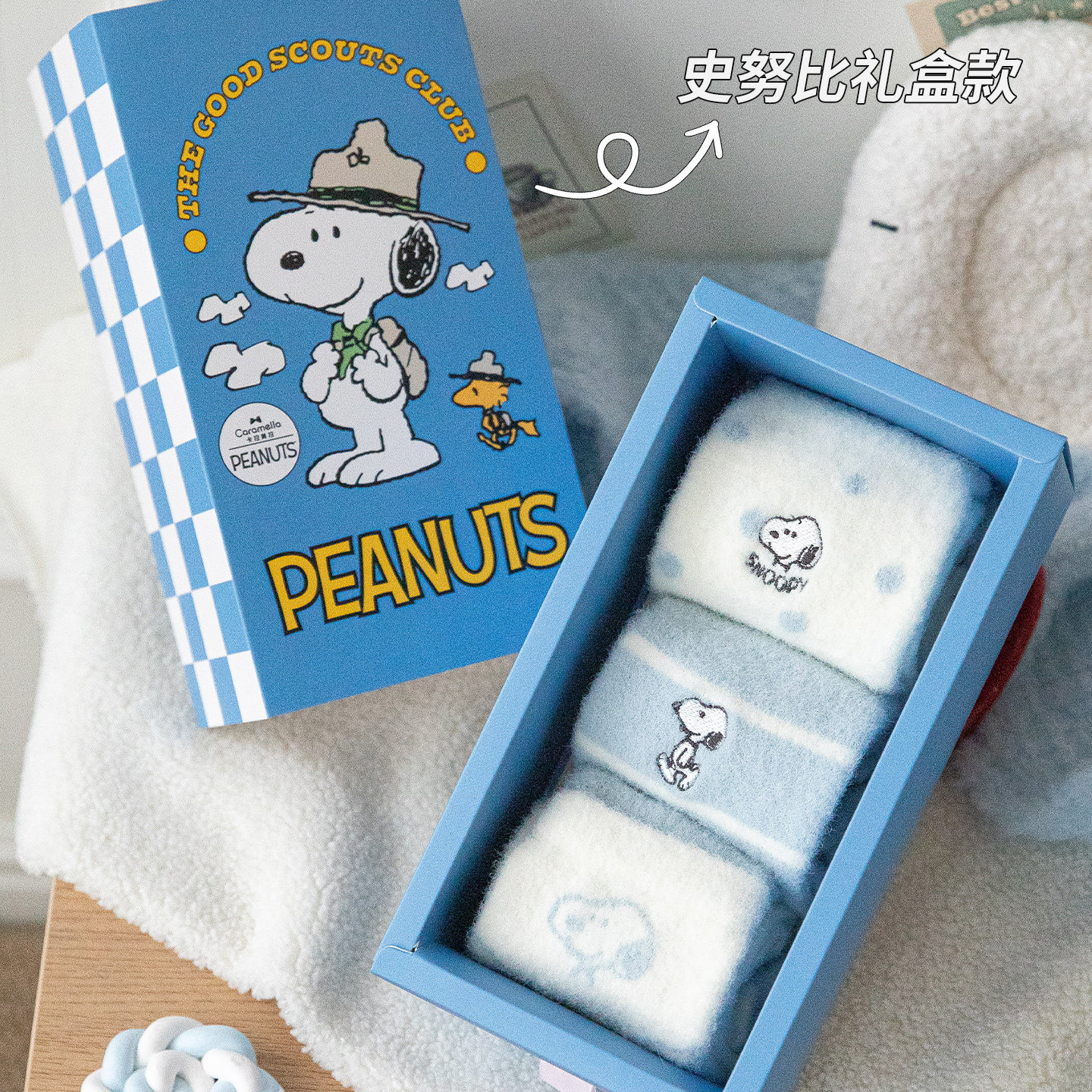 卡拉美拉史努比联名2026秋冬新款中筒袜女保暖礼盒装云朵绒睡眠袜