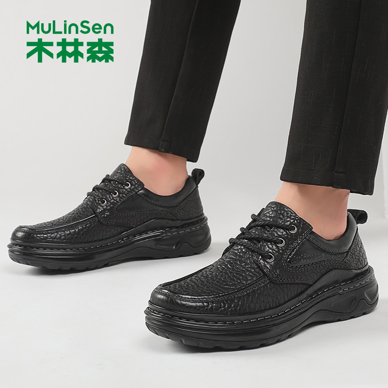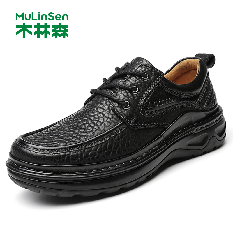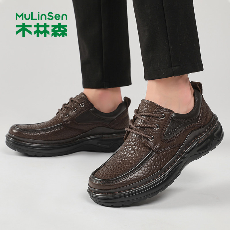 木林森皮鞋男头层牛皮手工缝线真皮男士商务休闲正装中年爸爸鞋子