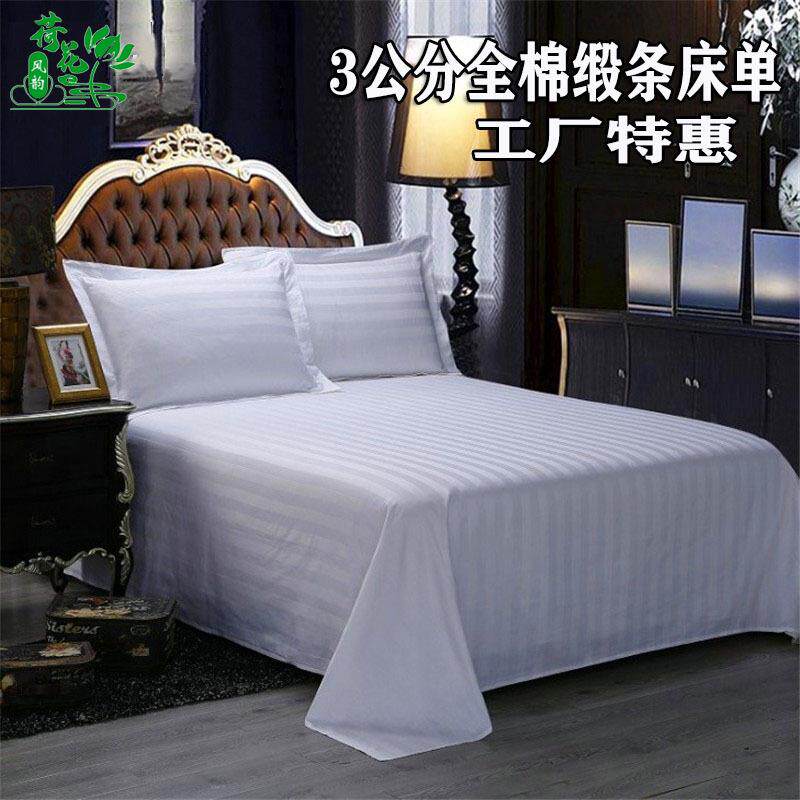 白色缎条床单60s专用床上用品厂家直销被套纯棉贡缎面料酒店同款