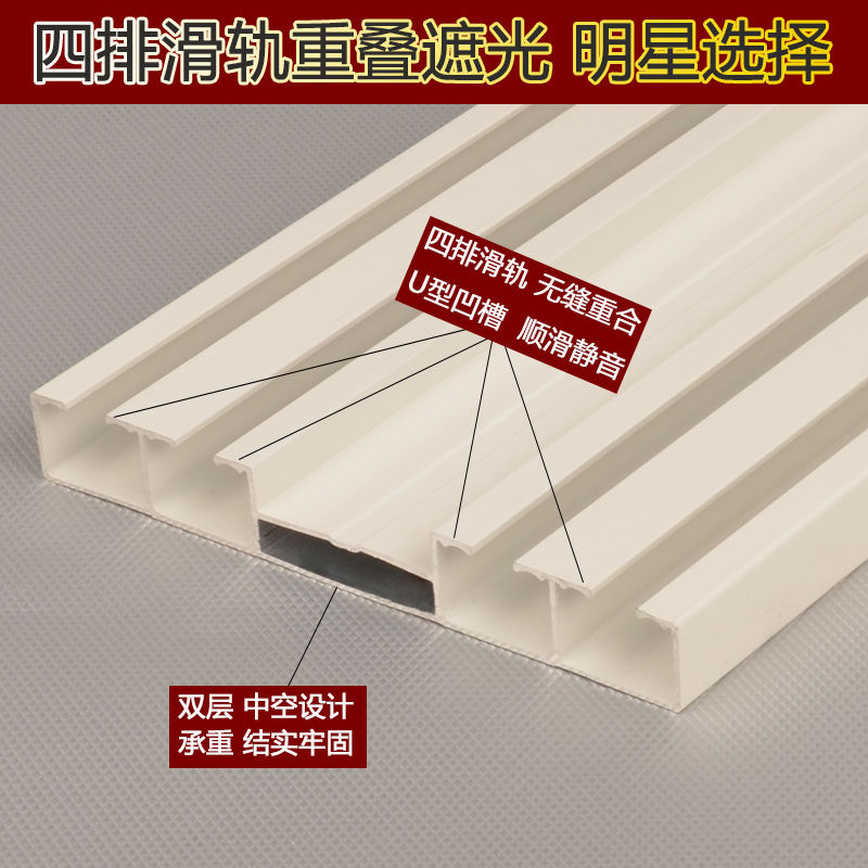 窗帘杆轨道 交叉四排双滑轨导轨 顺滑静音铝合金滑轨顶装侧装滑道