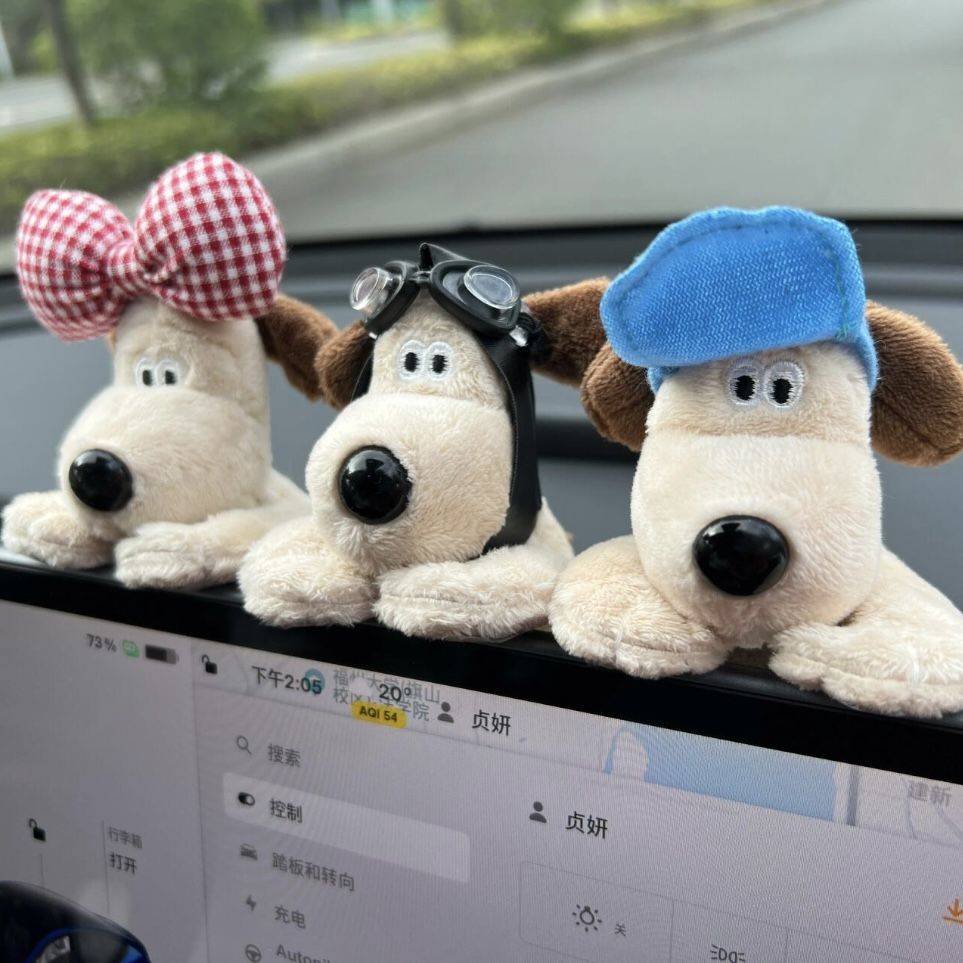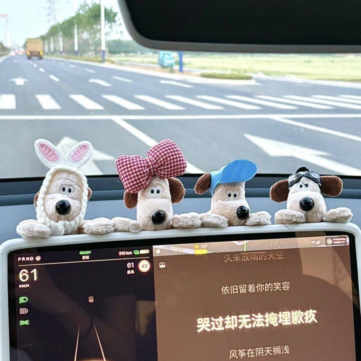 车载摆件可爱车内蝴蝶结小狗汽车屏幕装饰公仔控屏玩偶饰品