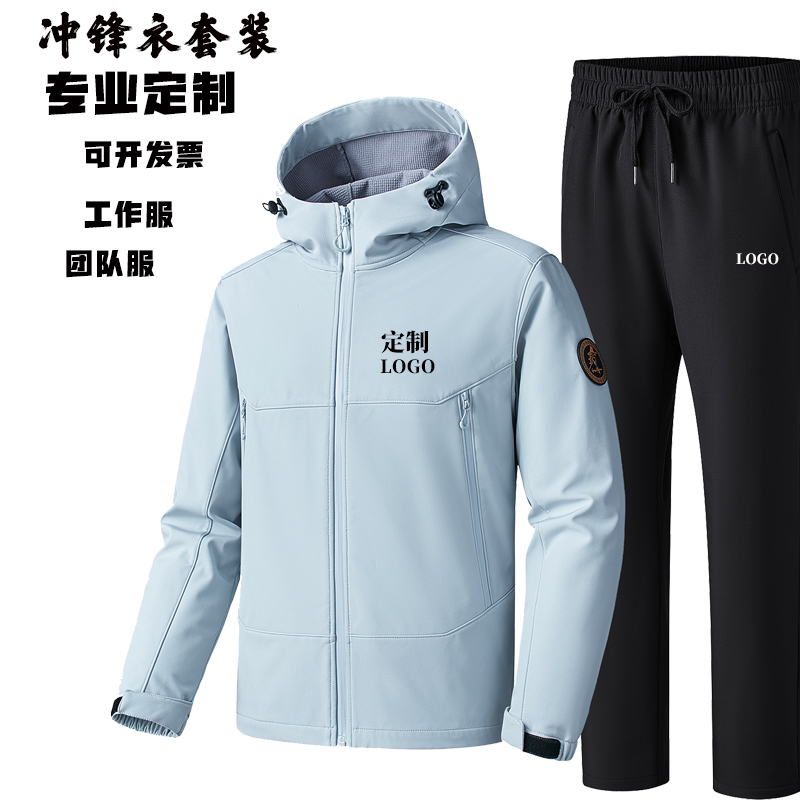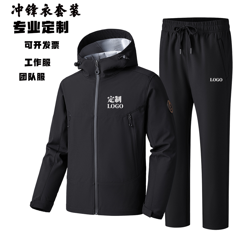 定制logo工作服团队服成人冲锋衣套装保暖两件套儿童冲锋衣冲锋裤