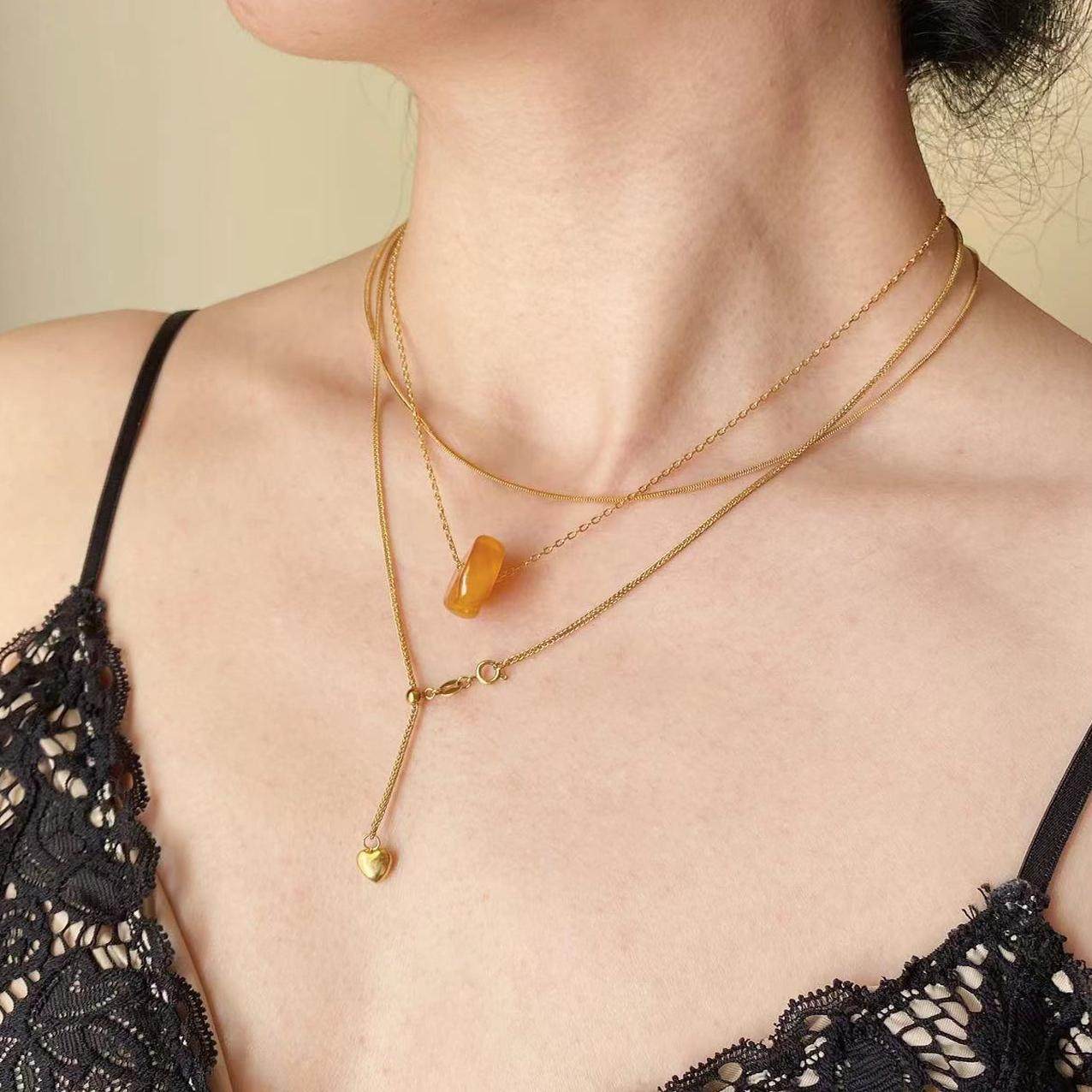 可调节肖邦链麻花链银项链锁骨链子18K黄金素链无吊坠针式万能链