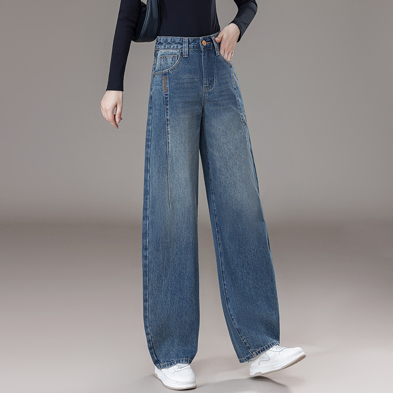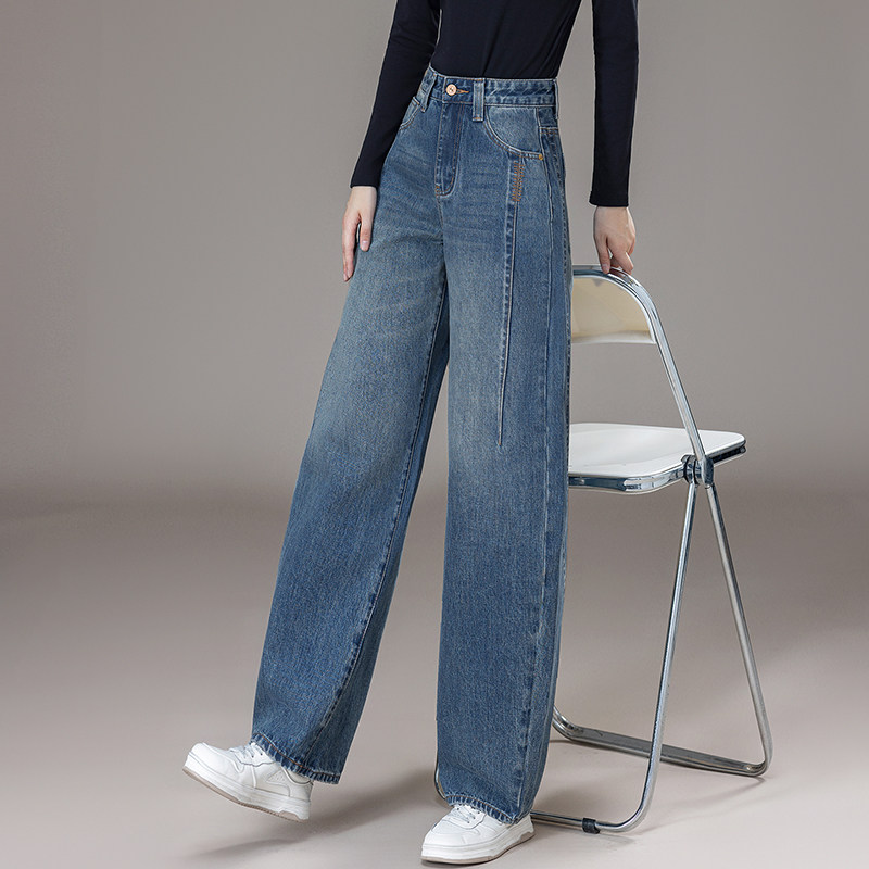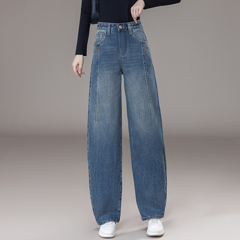 加绒加厚弯刀九分牛仔裤女2025秋冬新款高腰宽松遮腿阔腿香蕉长裤