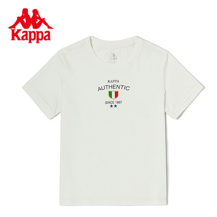 卡帕Kappa 1916经典复古白色运动T恤新款女夏季休闲半袖徽章短袖