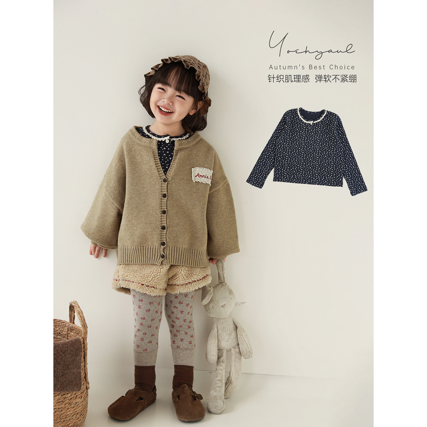 幼悠 女童森系小碎花打底衫冬季萌趣可爱撞色蕾丝边领百搭休闲T恤