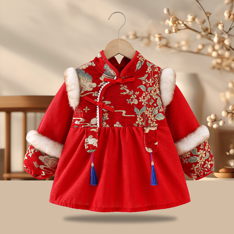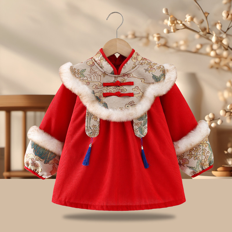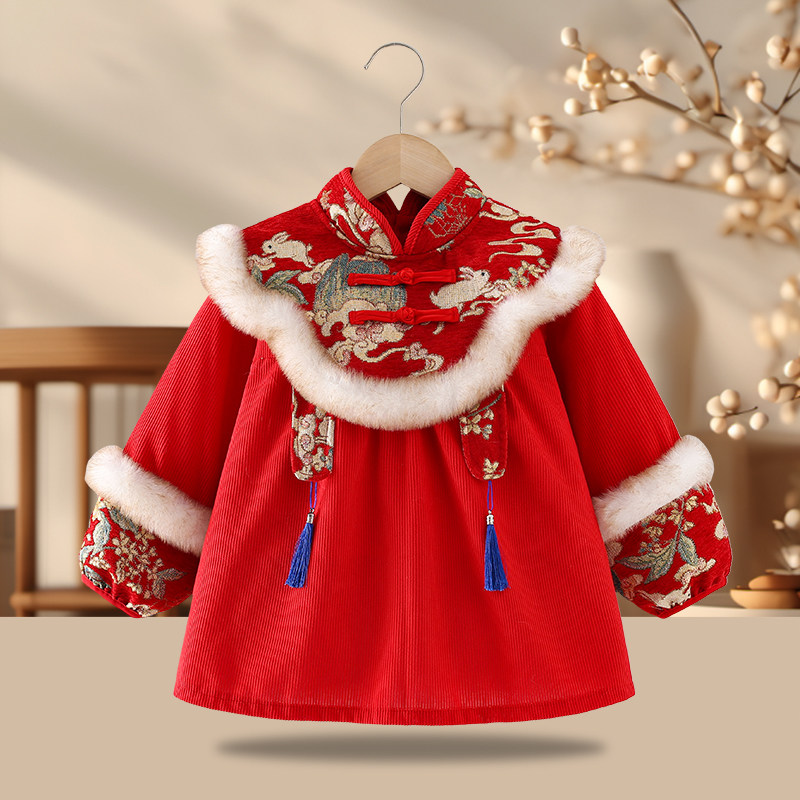 儿童罩衣外穿洋气秋冬女宝宝厚拜年服防水防脏婴儿围裙吃饭反穿衣