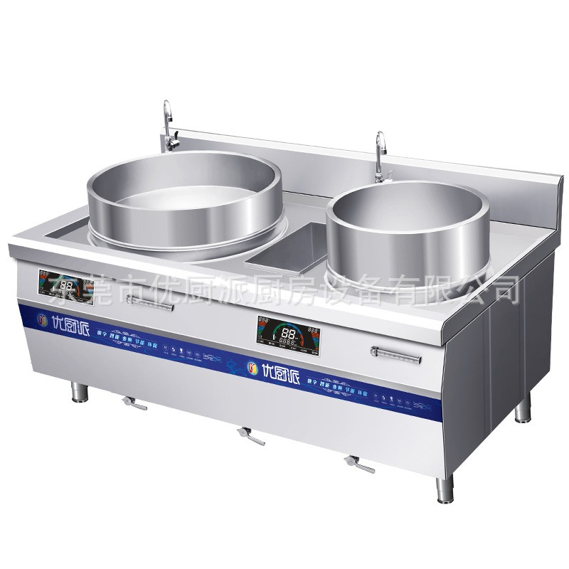 商用电磁双头煮炉灶大小煮面煲汤锅带冷面槽卤肉汤锅酒店餐厅餐厅