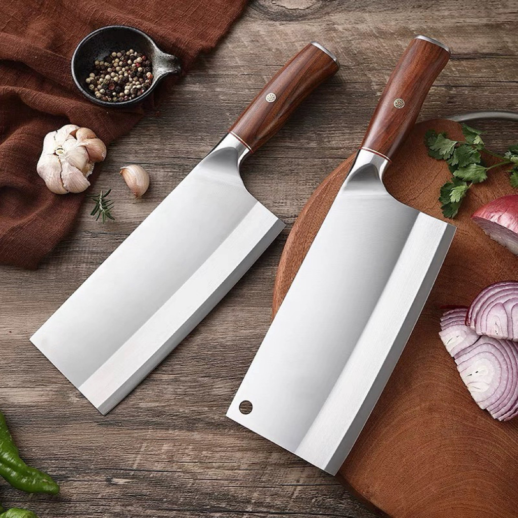 德国进口9CR18MOV夹钢刀家用切肉丝切菜锋利免磨切片刀斩切两用刀