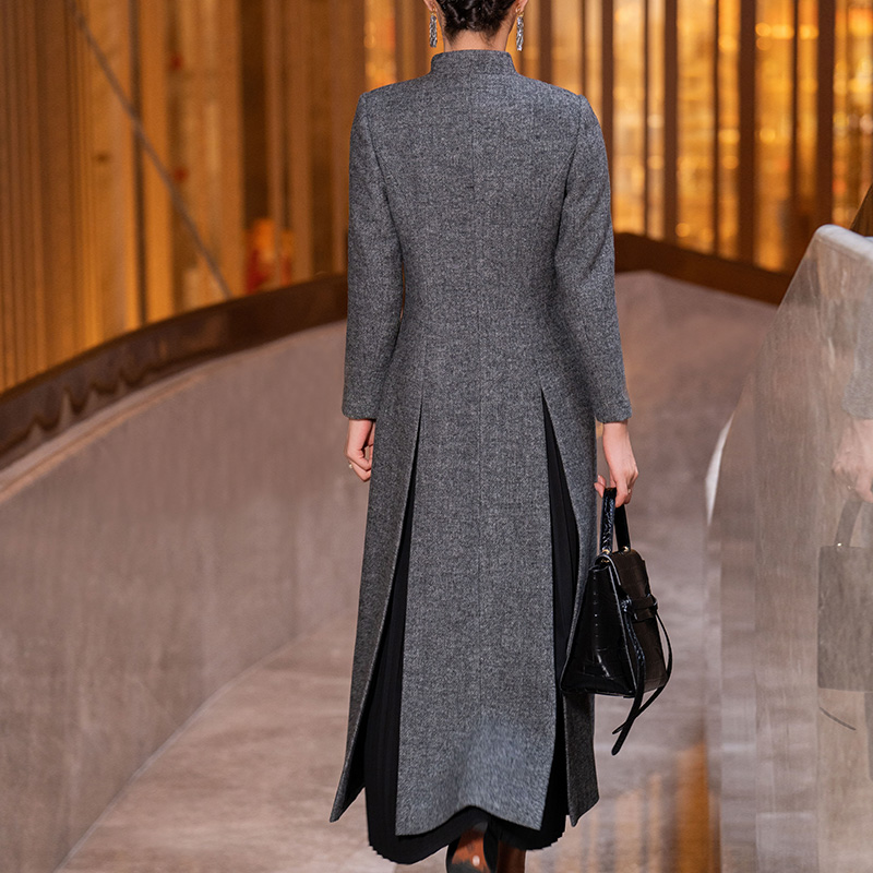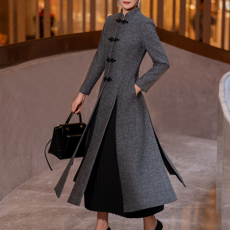 2025年冬立领新中式长款毛呢大衣