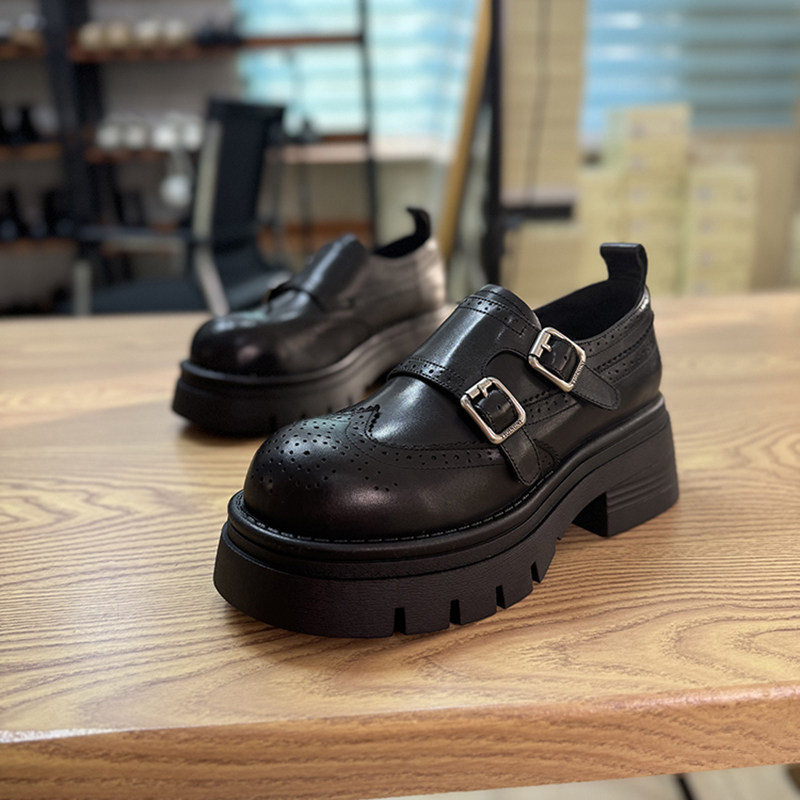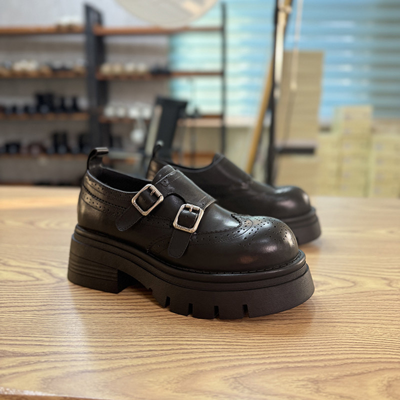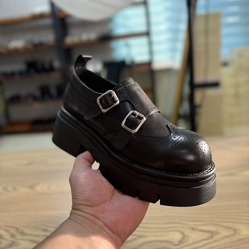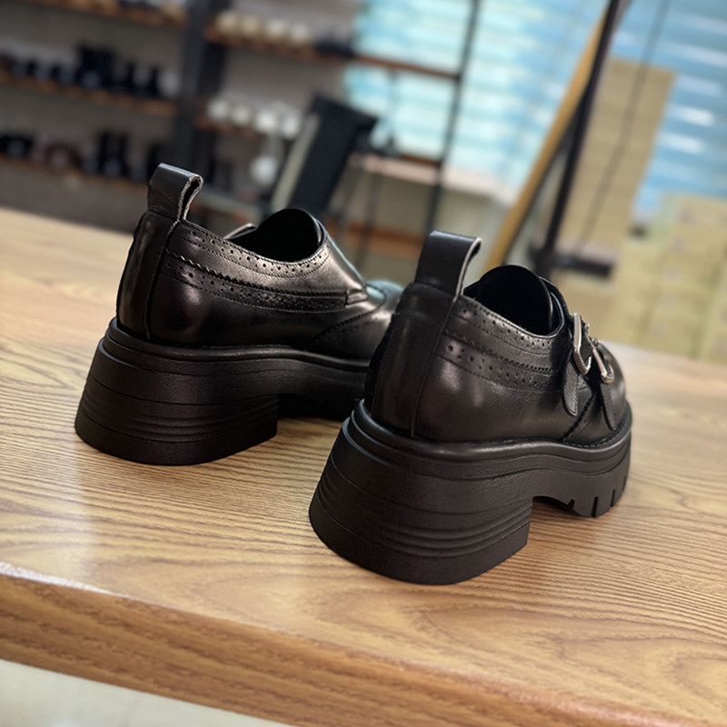 英伦风小皮鞋女2025年新春季款真皮女单鞋松糕厚底圆头小个子女鞋