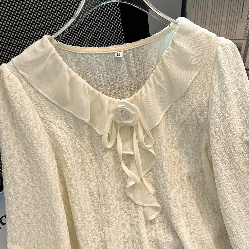 155小个子显高秋装150cm女装加小码XXXS长袖衬衫女打底衫花朵上衣