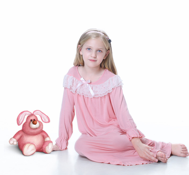女童欧美春夏秋冬可穿莫代尔针织棉长款公主睡裙睡衣家居服可外穿