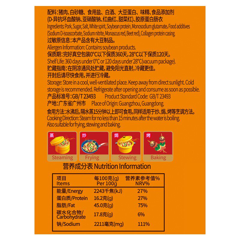 皇上皇广式腊肠广州特产粒肠400g