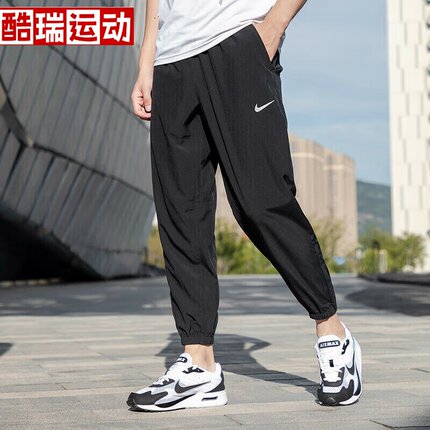 耐克运动男裤夏季薄款冰丝速干黑色梭织长裤束脚宽松裤休闲运动裤