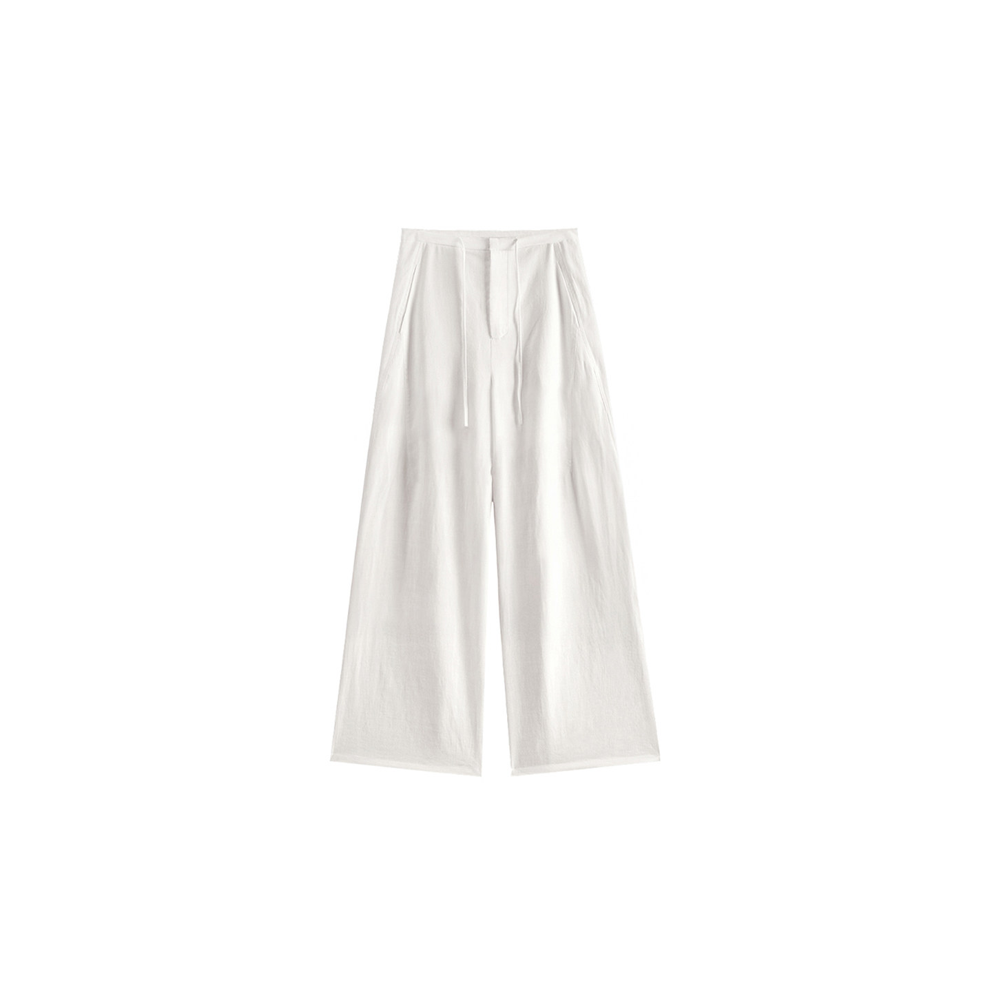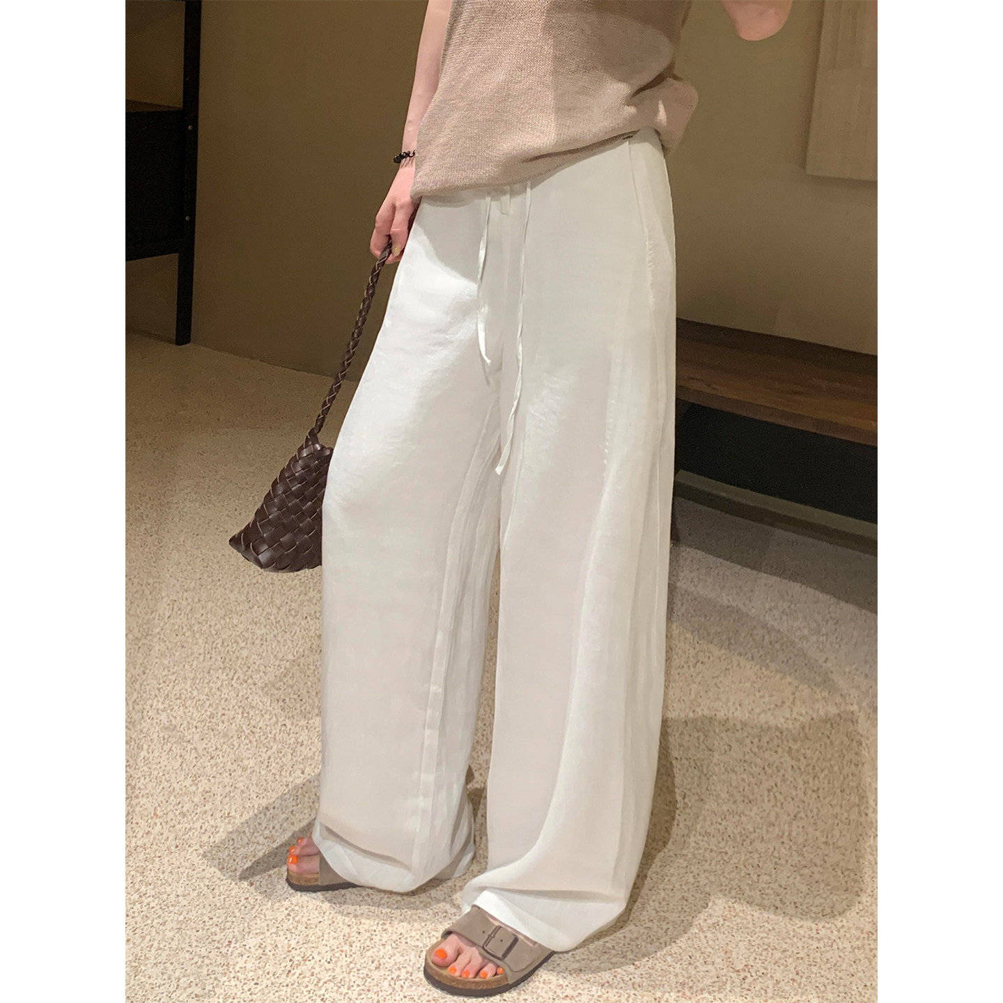 白色亚麻裤子女2025秋冬新款胖妹妹mm高腰宽松显瘦阔腿棉麻凉凉裤
