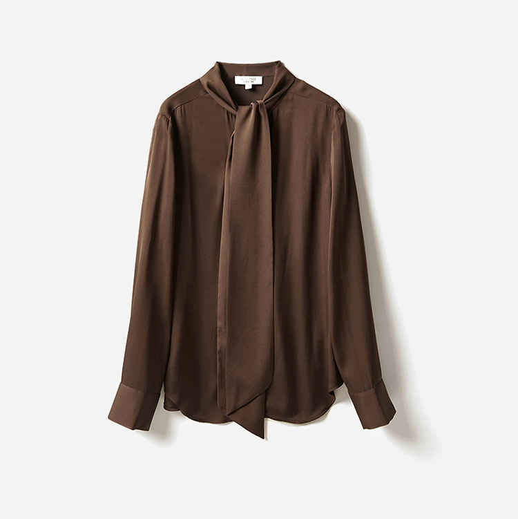*WCS03256 茉莉雅集 优雅23MM弹力双乔真丝飘带长袖衬衫上衣女
