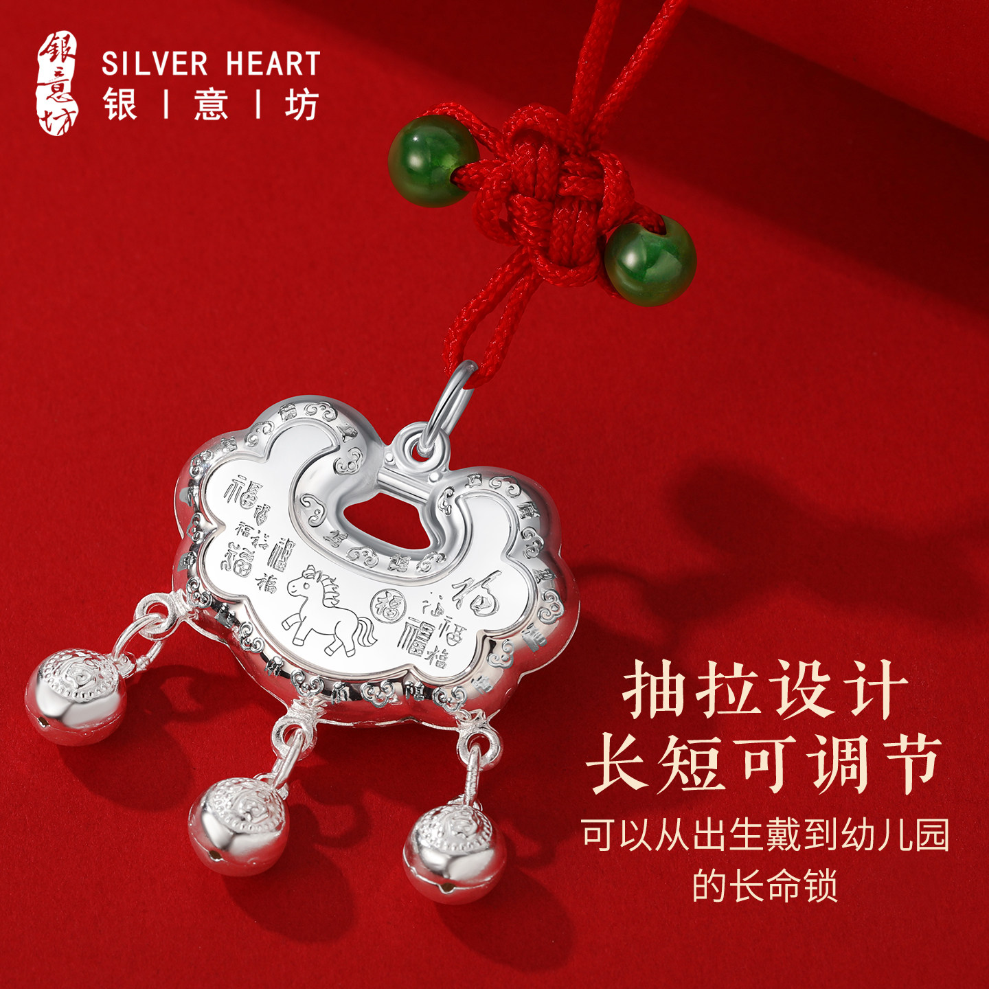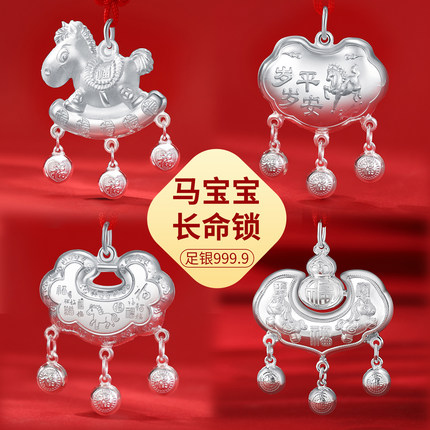 银锁纯银宝宝长命锁马年新生婴儿平安锁生肖马吊坠满月出生见面礼