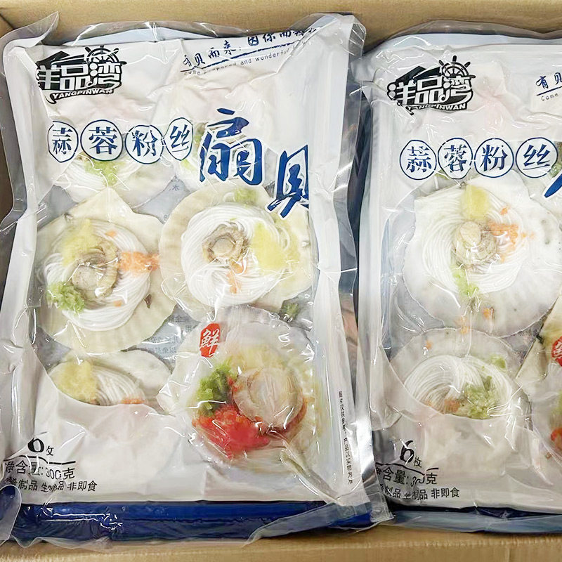 洋品湾蒜蓉粉丝扇贝新鲜冷冻半壳大扇贝烧烤食材整箱商用300g12袋