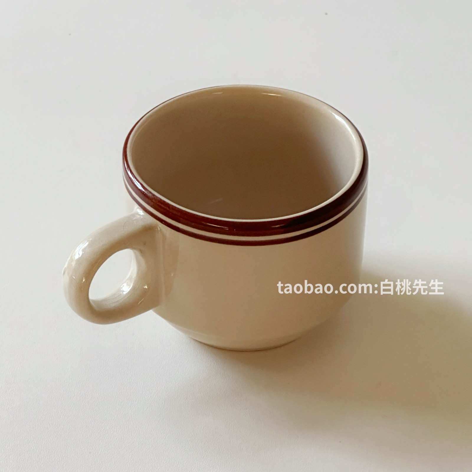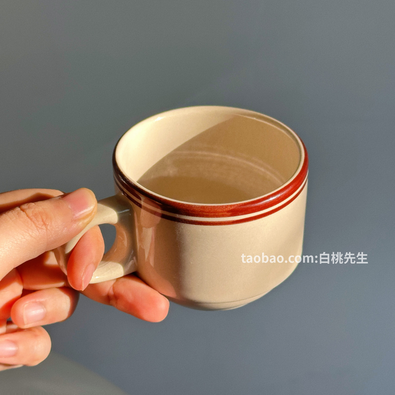 美式复古棕线条陶瓷咖啡杯子