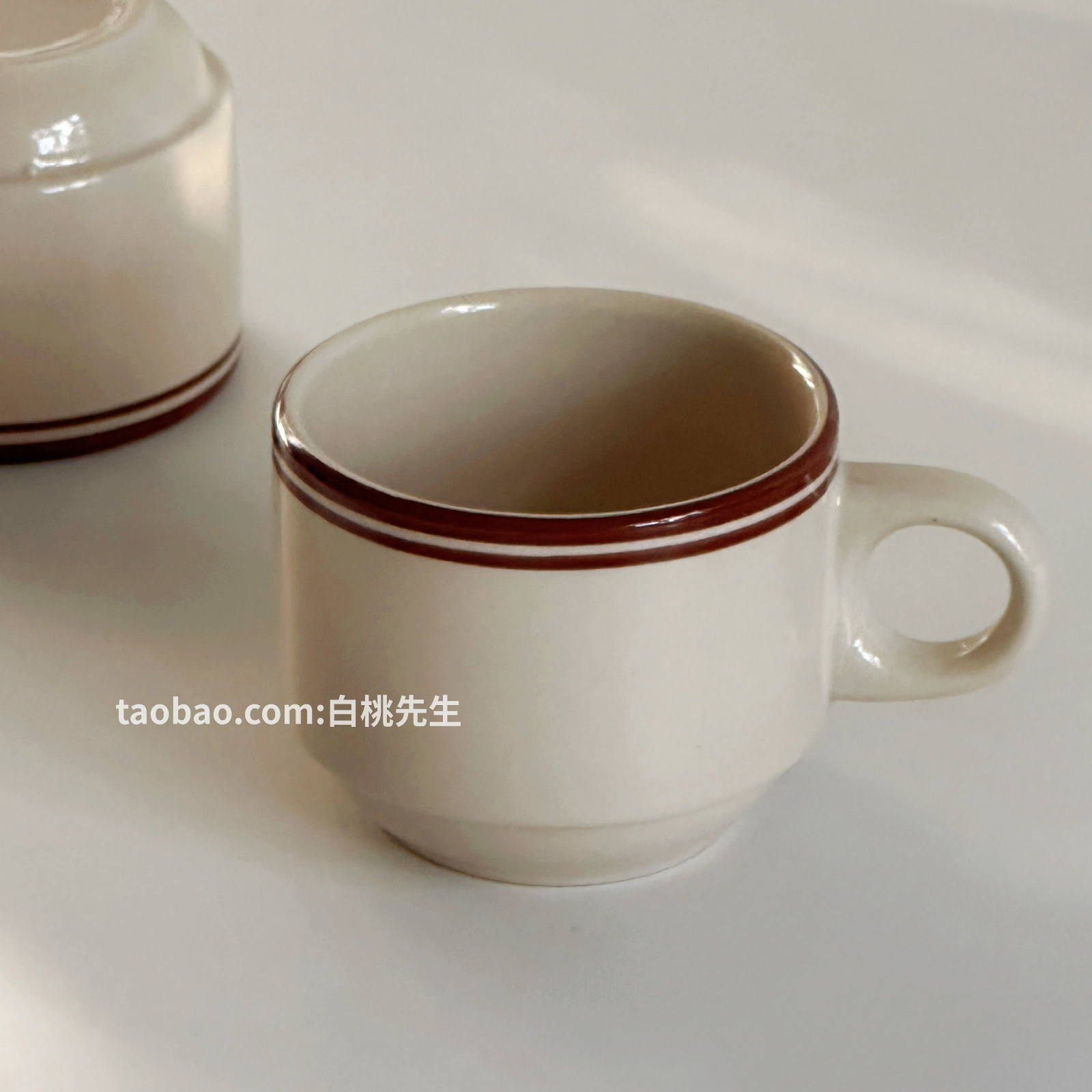 白桃先生 ins风复古棕线条美式家居陶瓷咖啡杯家用下午茶美剧网红
