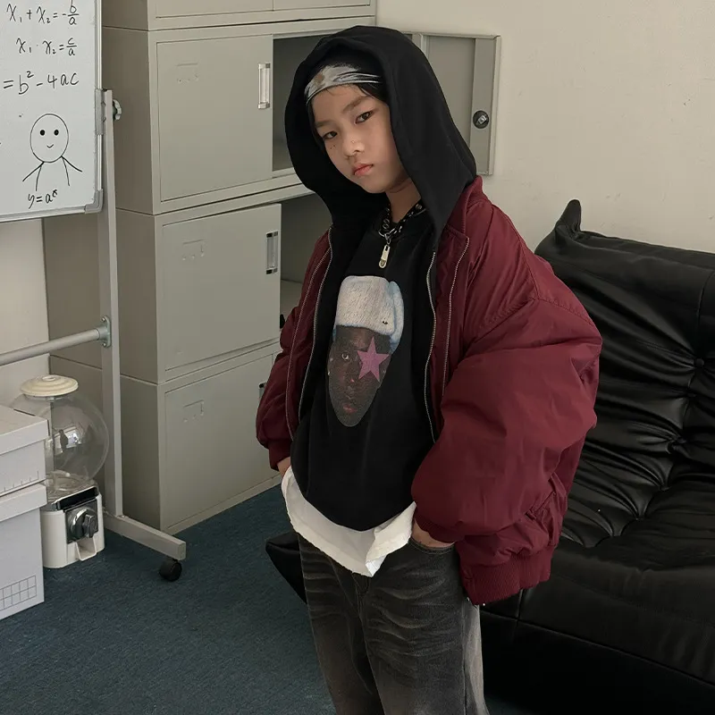 儿童洋气假两件连帽长袖夹克棉服潮2025秋冬韩版男童休闲棉衣外套