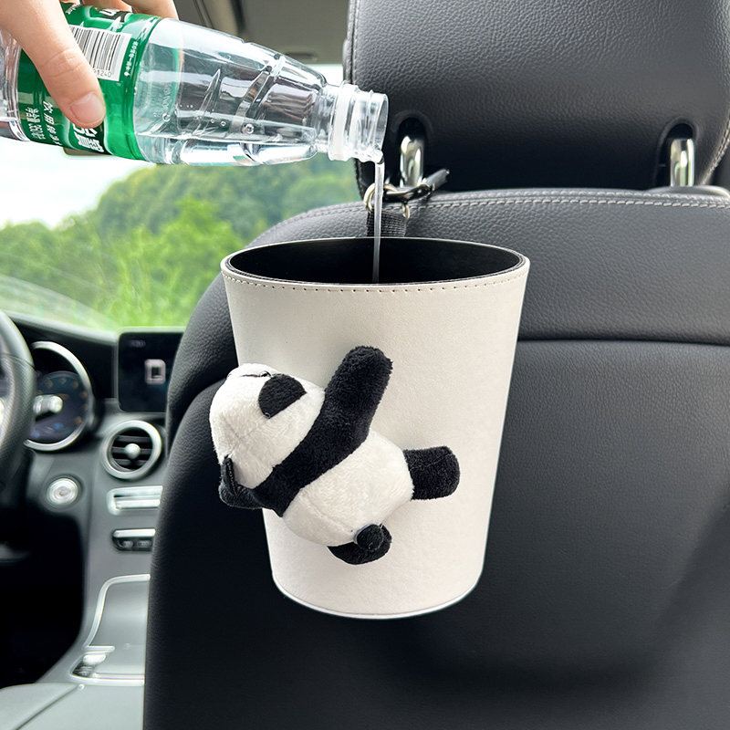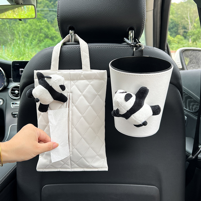 可爱卡通熊猫车载垃圾桶纸巾盒