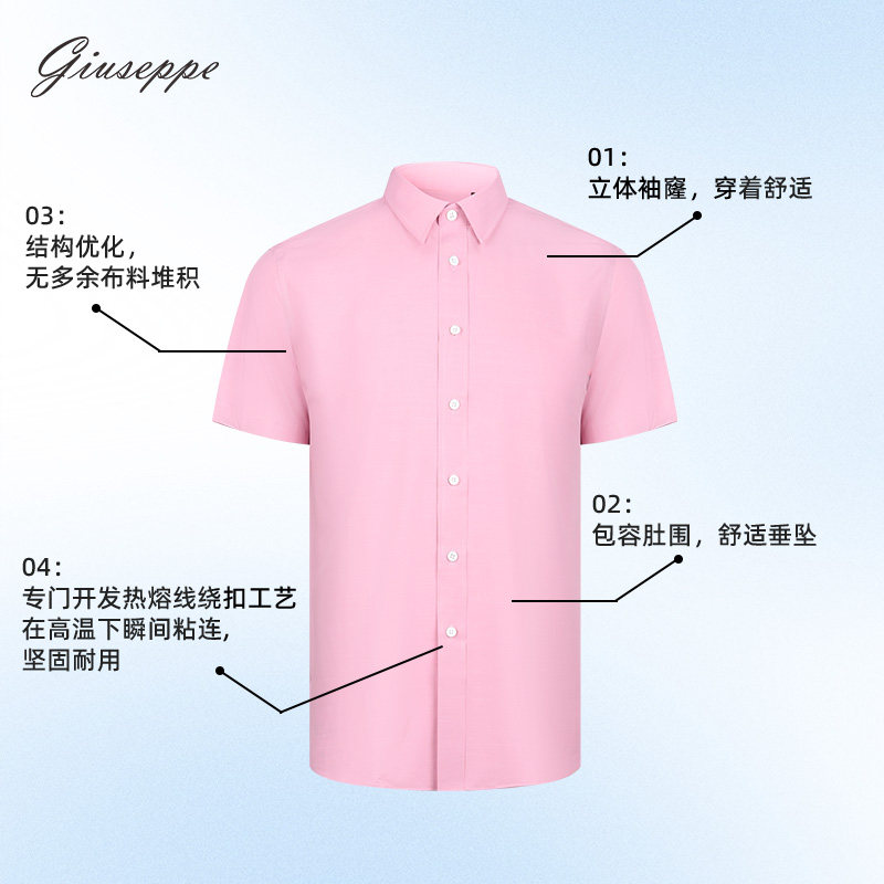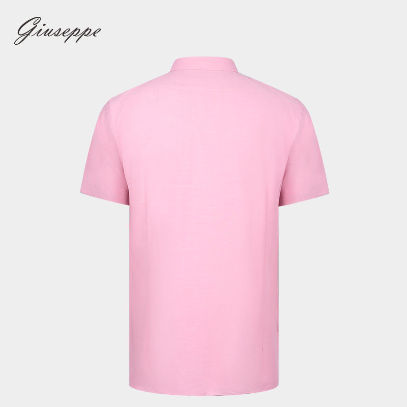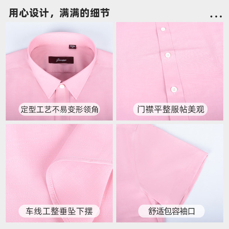乔治白夏季薄款男士短袖衬衫尖领粉色衬衣微弹休闲修身纯色上衣