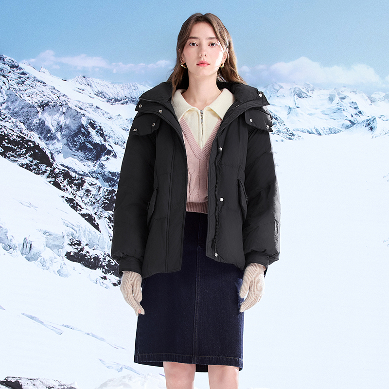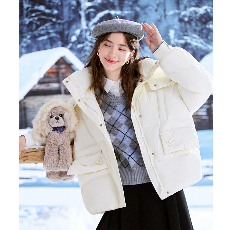 betu百图加厚保暖连帽羽绒服女2024年冬季新款小个子白鸭绒外套