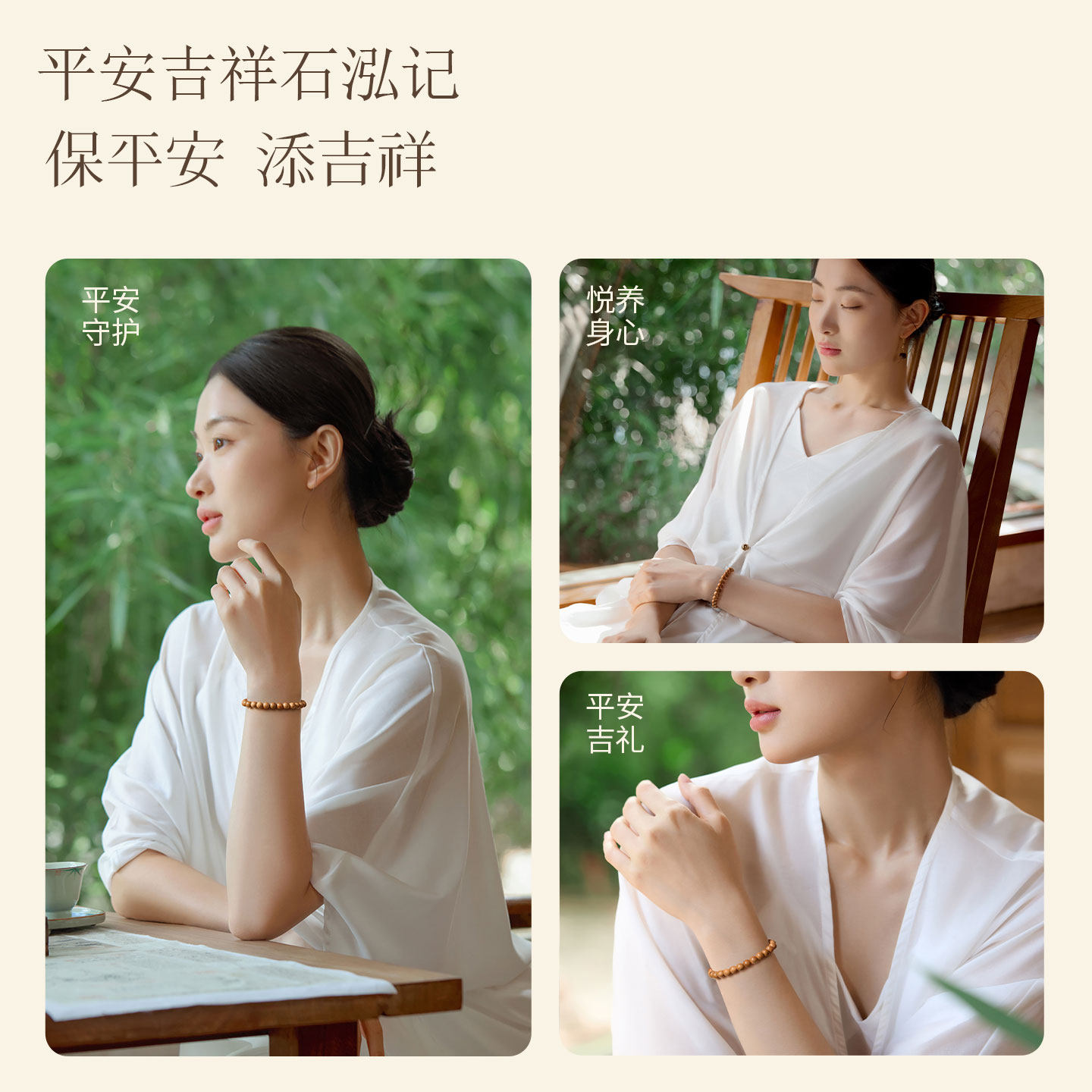 石泓记天然老桃木手串女款朱砂男本命年木质文玩朱砂手链盘玩马年