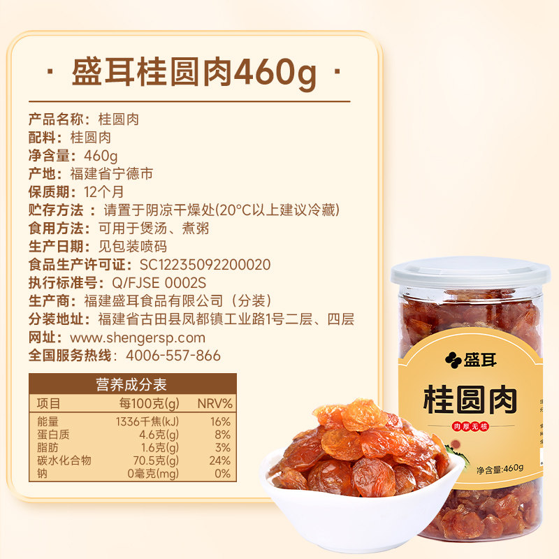 包邮!盛耳桂圆肉460g无核免剥肉厚桂圆干龙眼肉福建干货新果