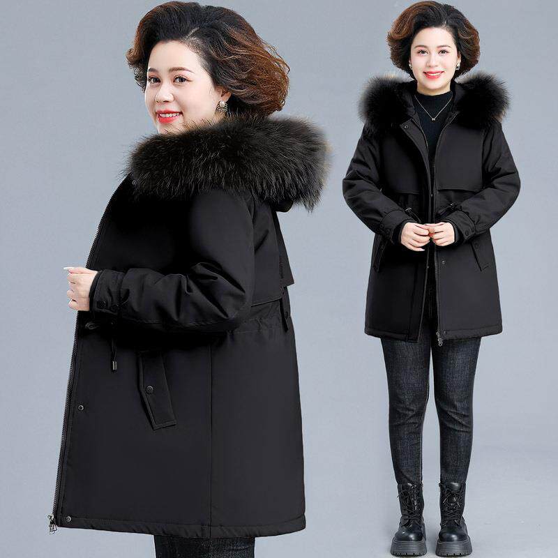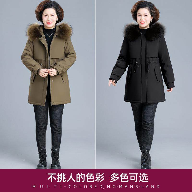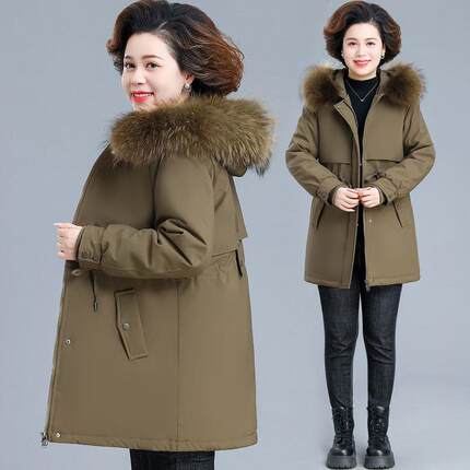 妈妈冬装羽绒服可拆卸内胆中老年女装秋冬季毛领外活里活面派克服
