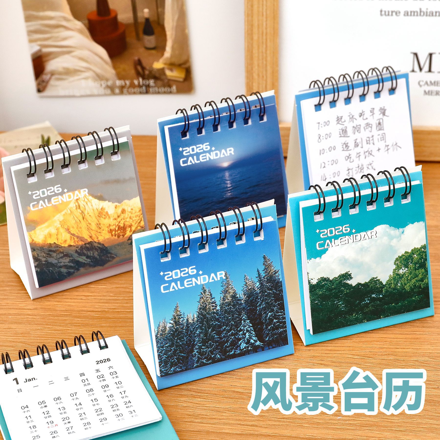 杭素2026年风景迷你小台历学生桌面打卡摆件日历颜值便携台历