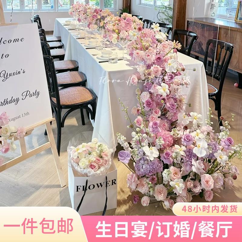 瀑布桌花仿真花玫瑰婚庆摆件酒店餐桌花排生日瀑布花装饰假花花艺