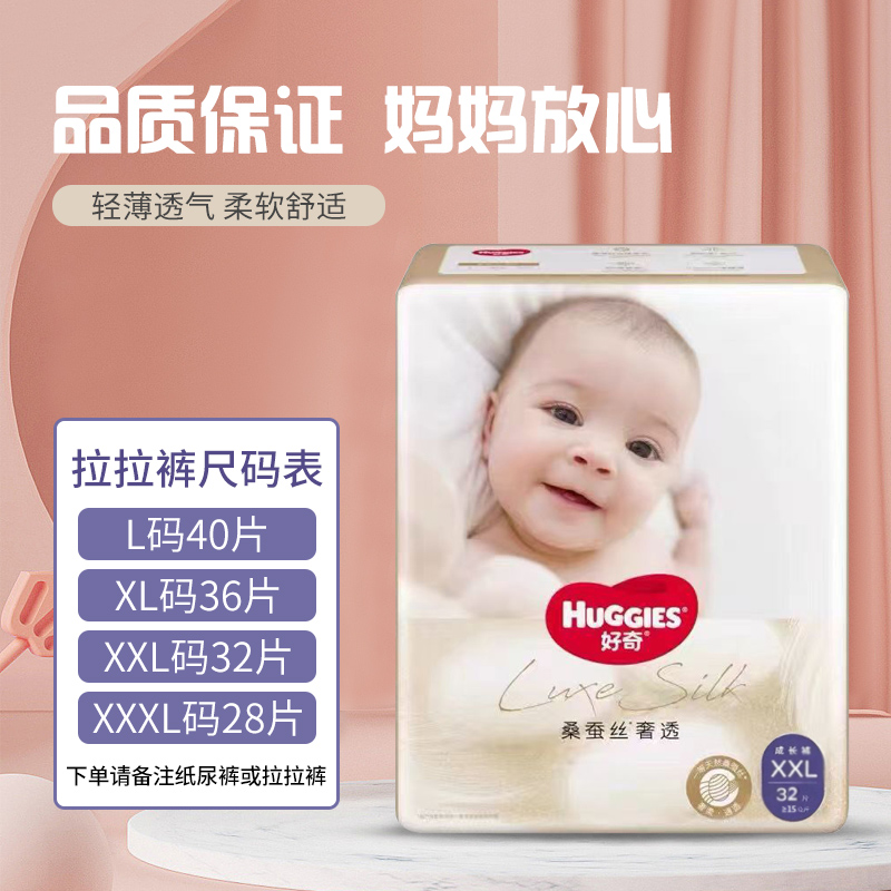 好奇桑蚕丝婴儿宝宝纸尿裤L/XL/XXL尿不湿超薄透气拉拉裤男女通用