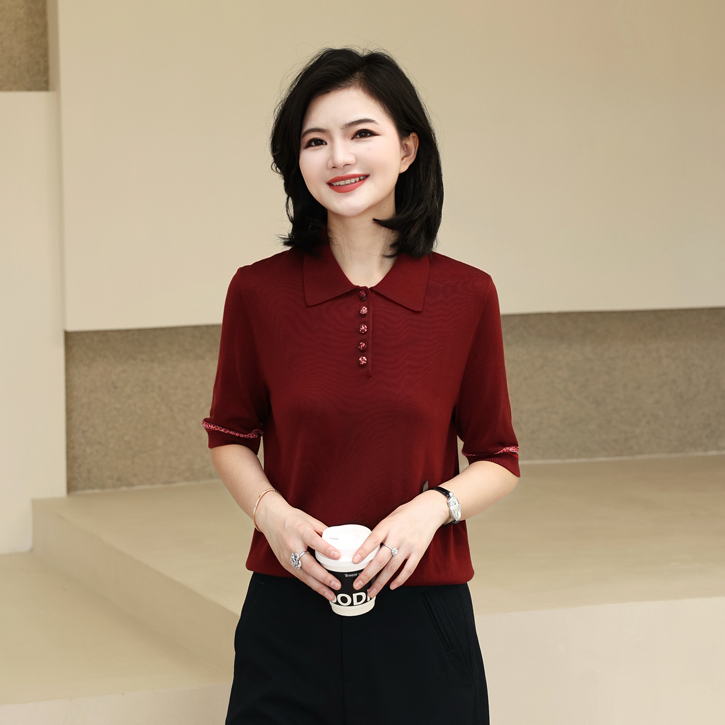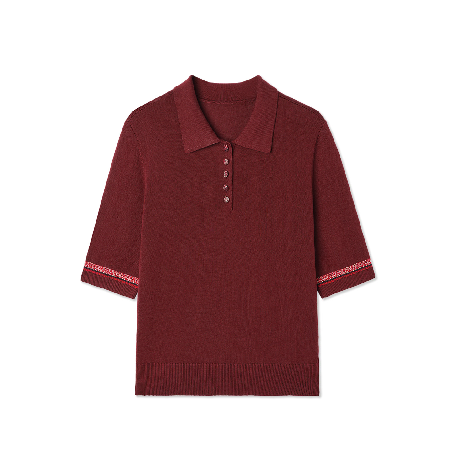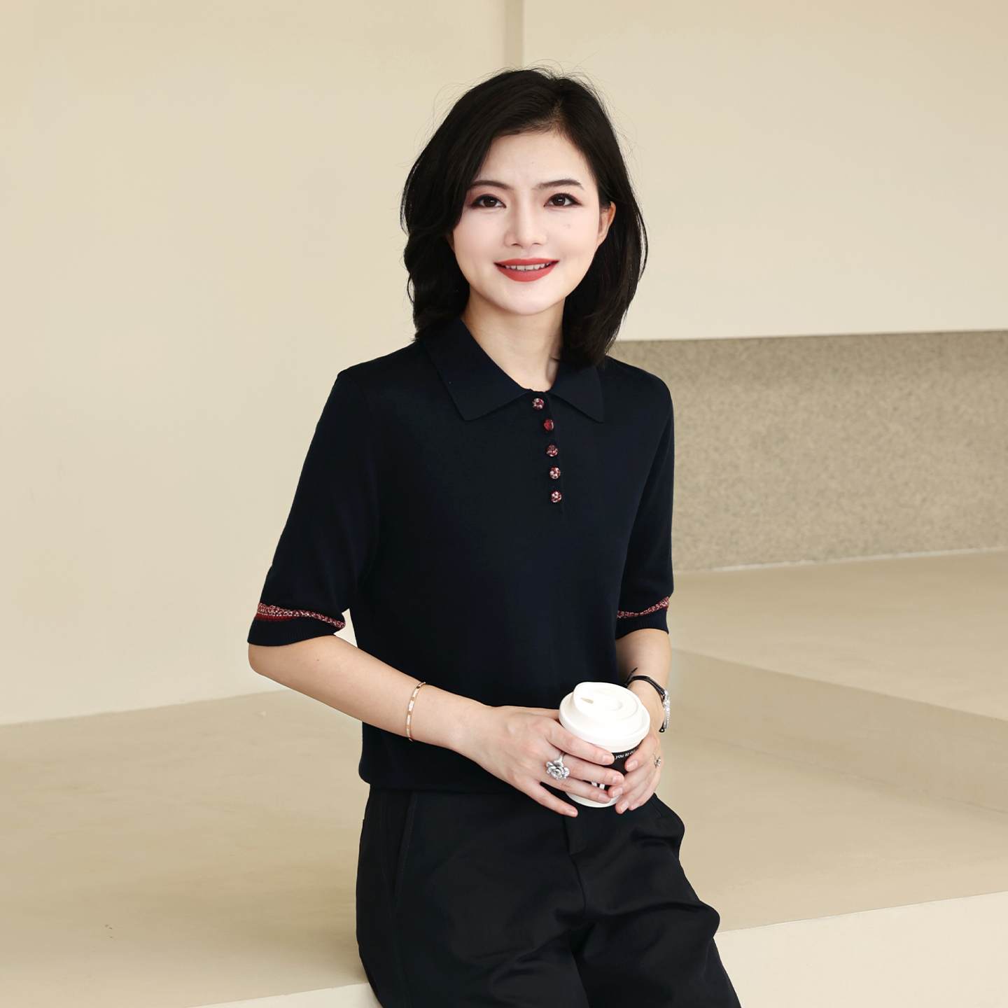 枫竺天丝莱赛尔气质Polo领提花针织衫女2025早秋穿搭中袖套头上衣