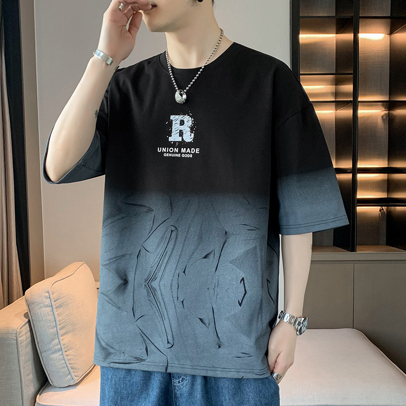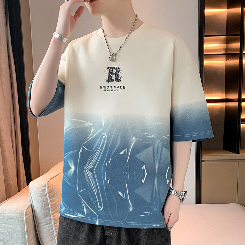 男装t恤短袖2025新款夏天青少年潮牌体恤渐变拼色上衣