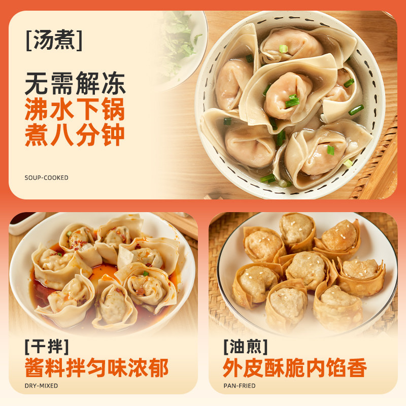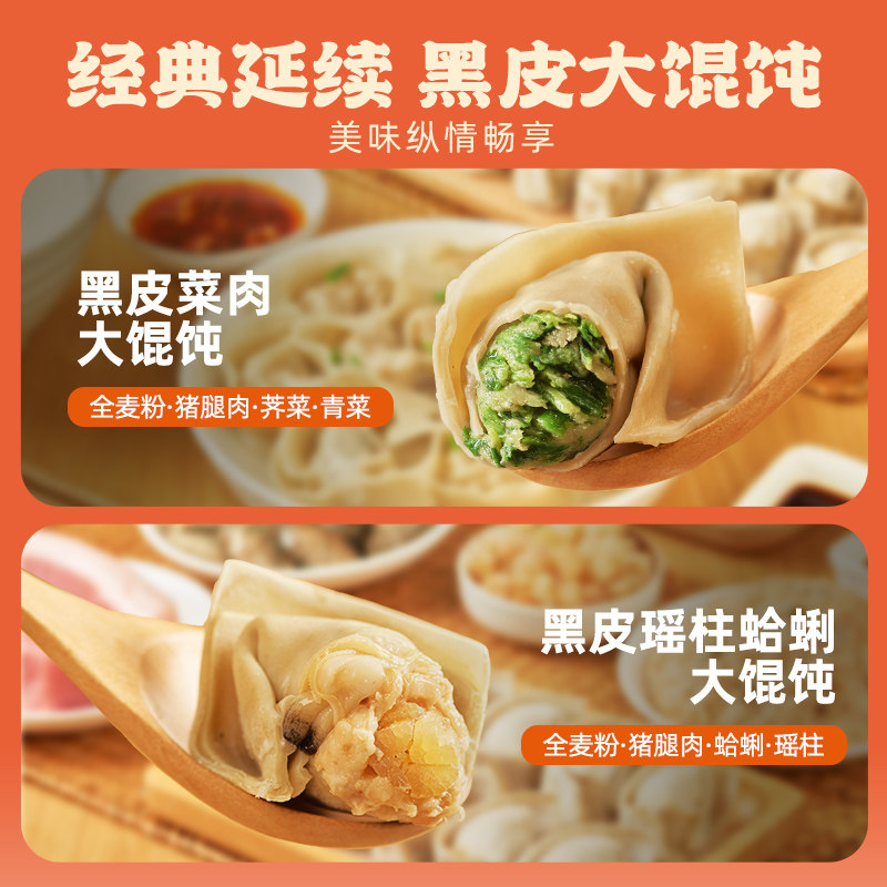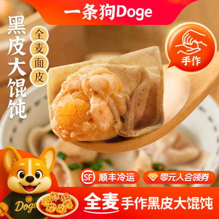 一条狗手作黑皮大馄饨全麦瑶柱蛤蜊花蛤扇贝猪肉早餐冷冻云吞面点