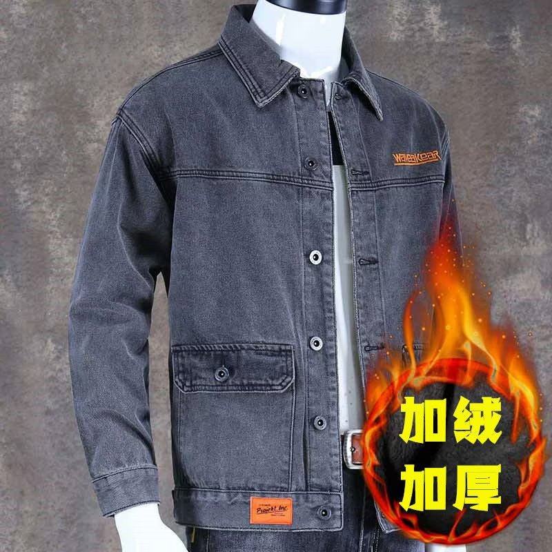 加绒加厚牛仔外套男秋冬季新款羊羔绒男式休闲夹克保暖棉衣加大码