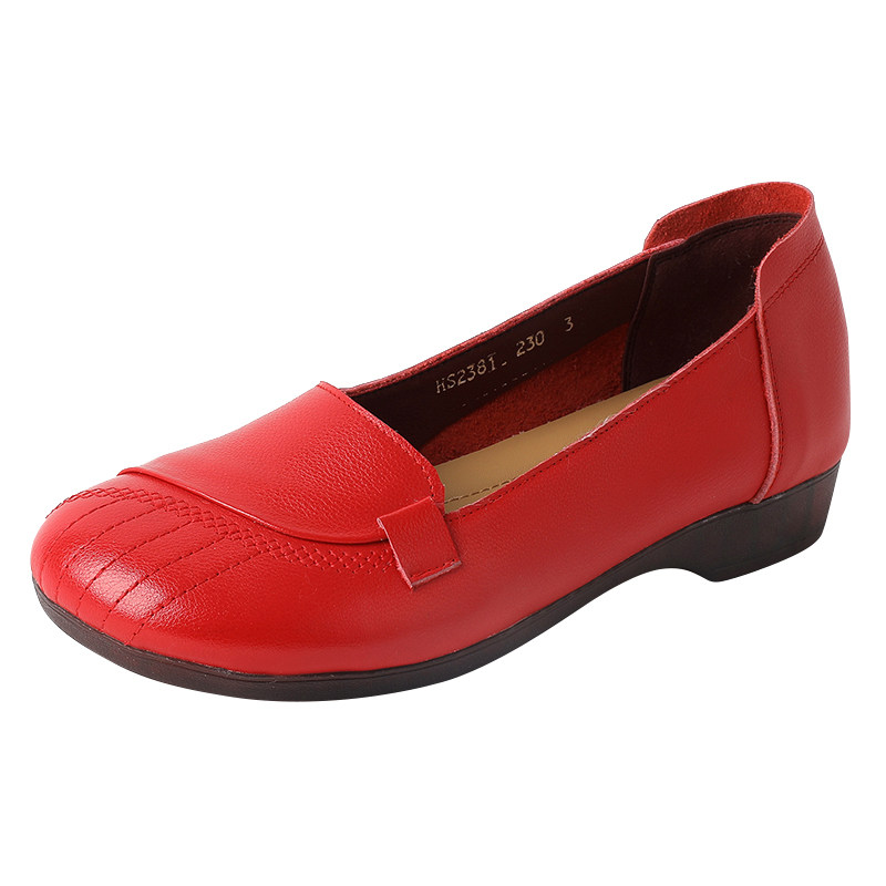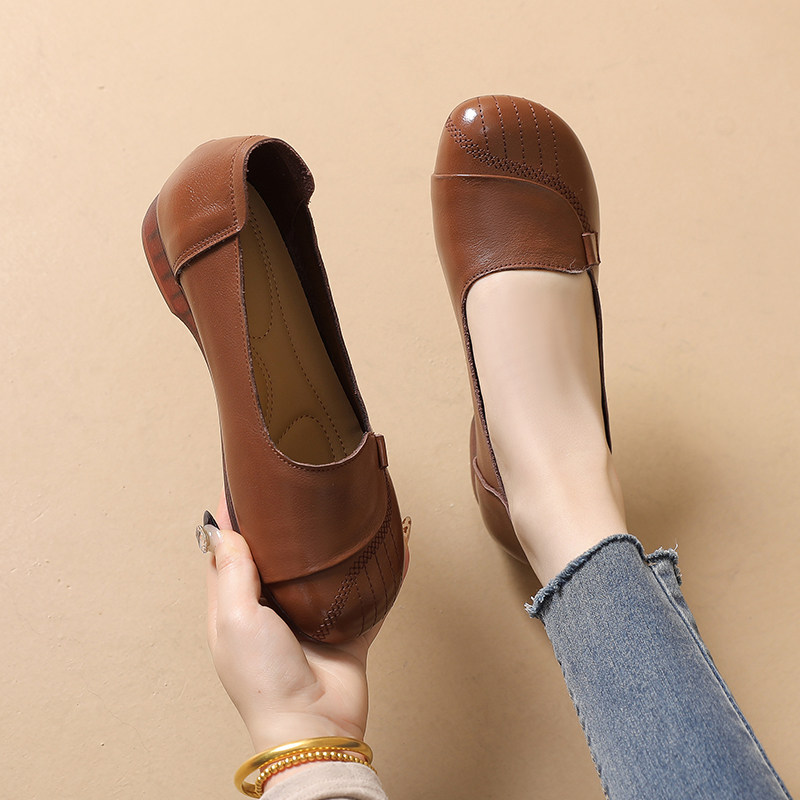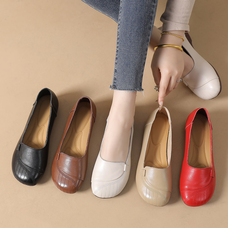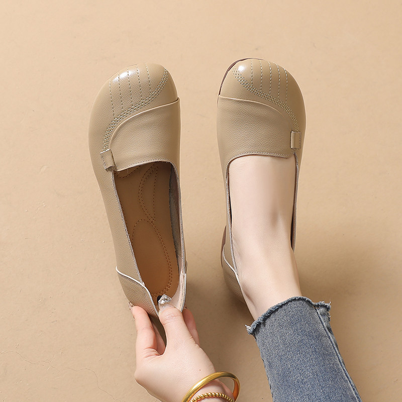真皮圆头软底浅口舒适女士豆豆鞋