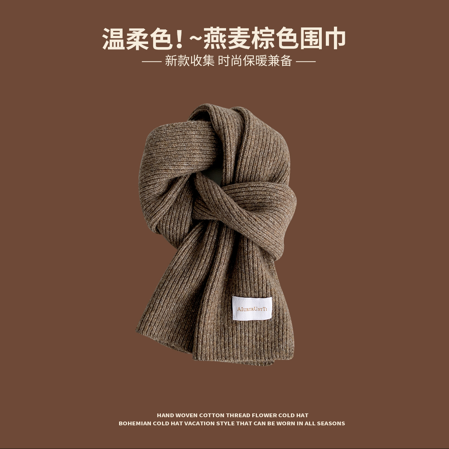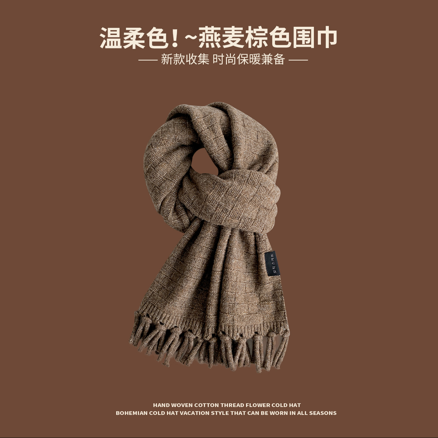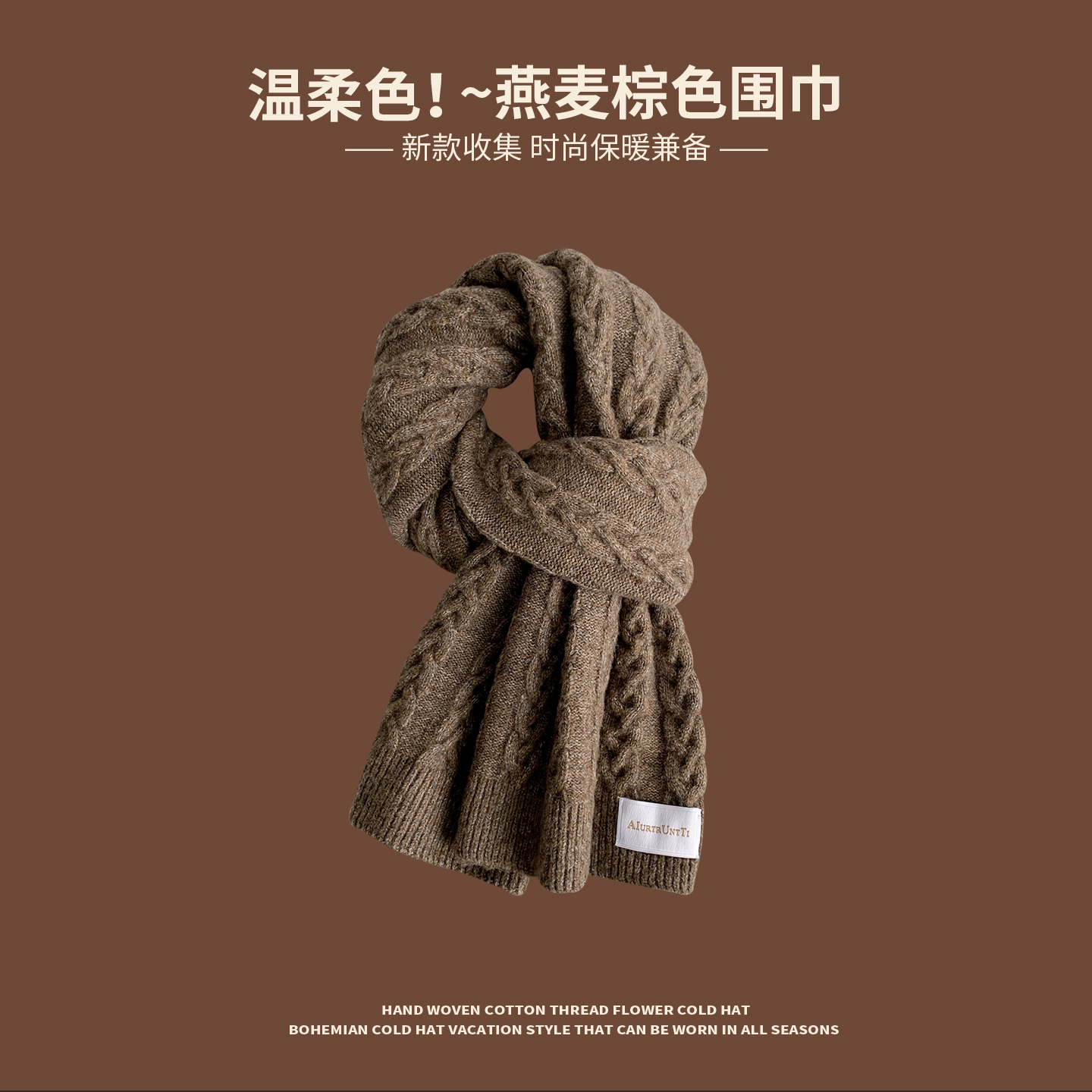 美拉德护颈针织围巾女秋冬季韩版百搭加厚保暖学生情侣毛线围脖男