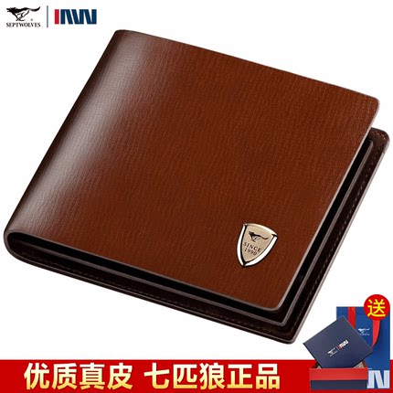 七匹狼钱包男士短款真皮钱夹高档牛皮韩版皮夹青年驾驶证商务票夹