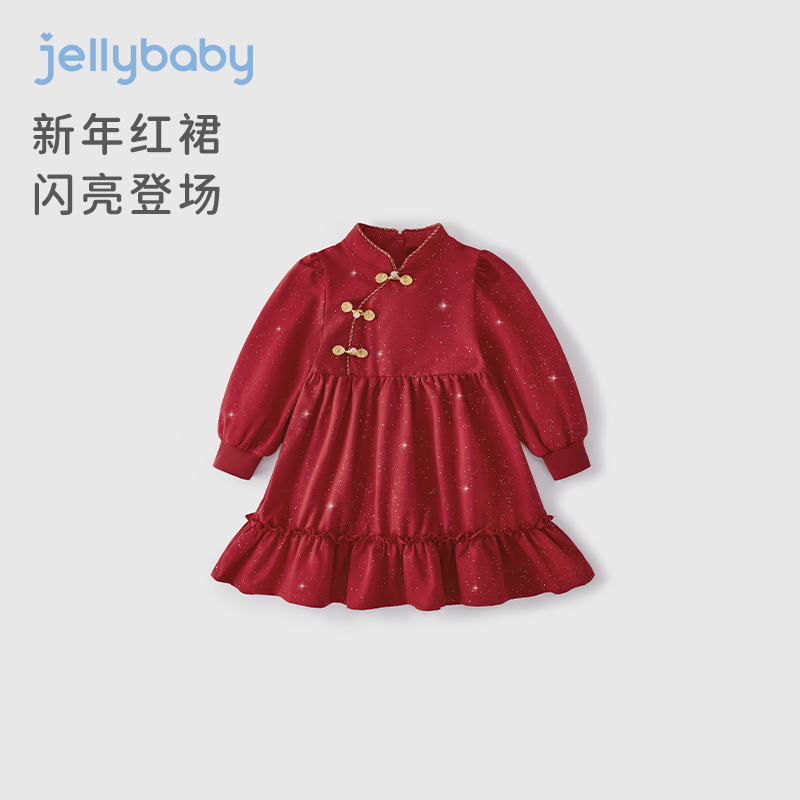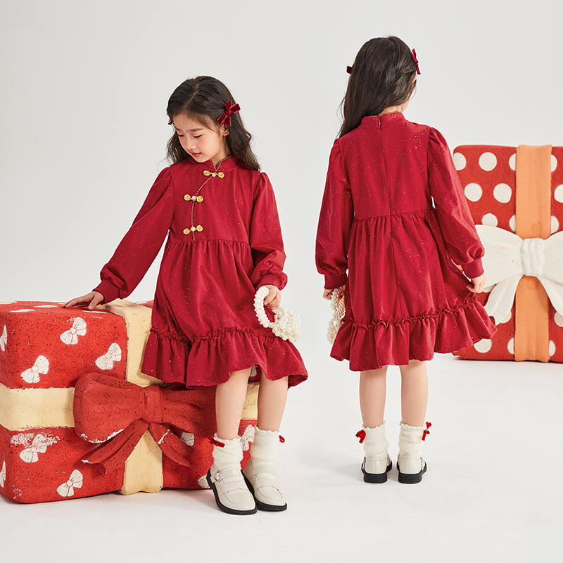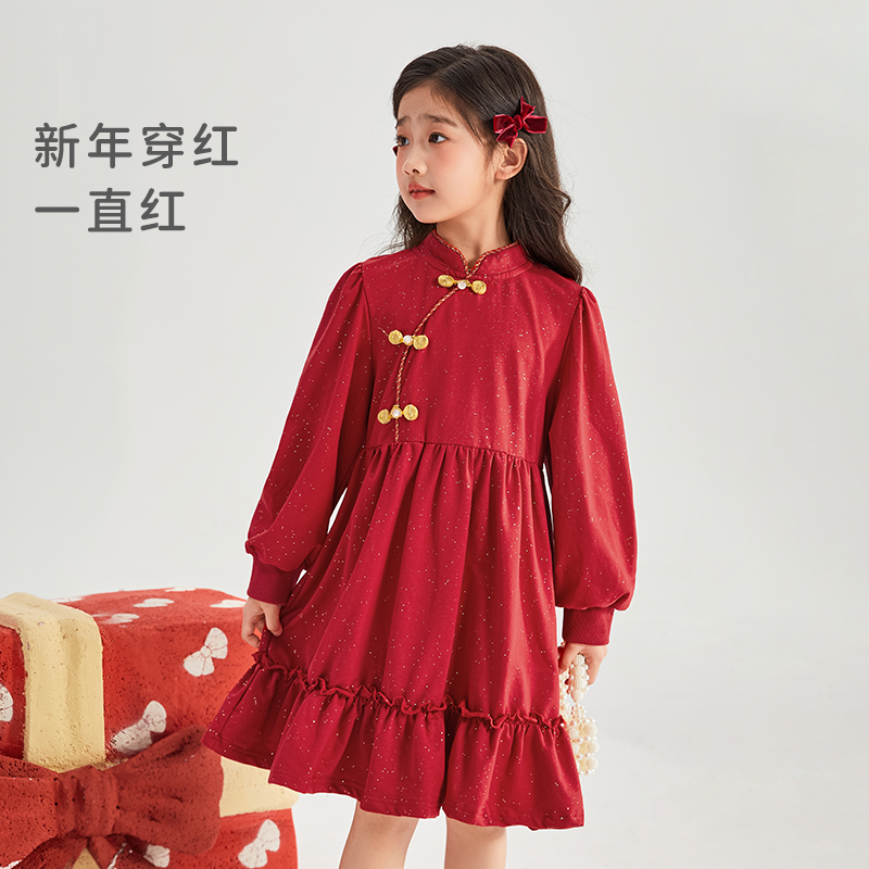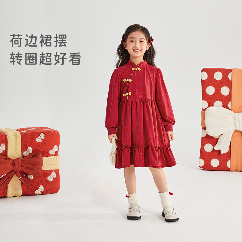 女童红色裙子秋冬新款大童洋气公主裙儿童2026春装宝宝新年连衣裙