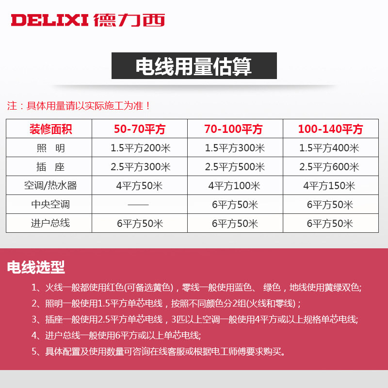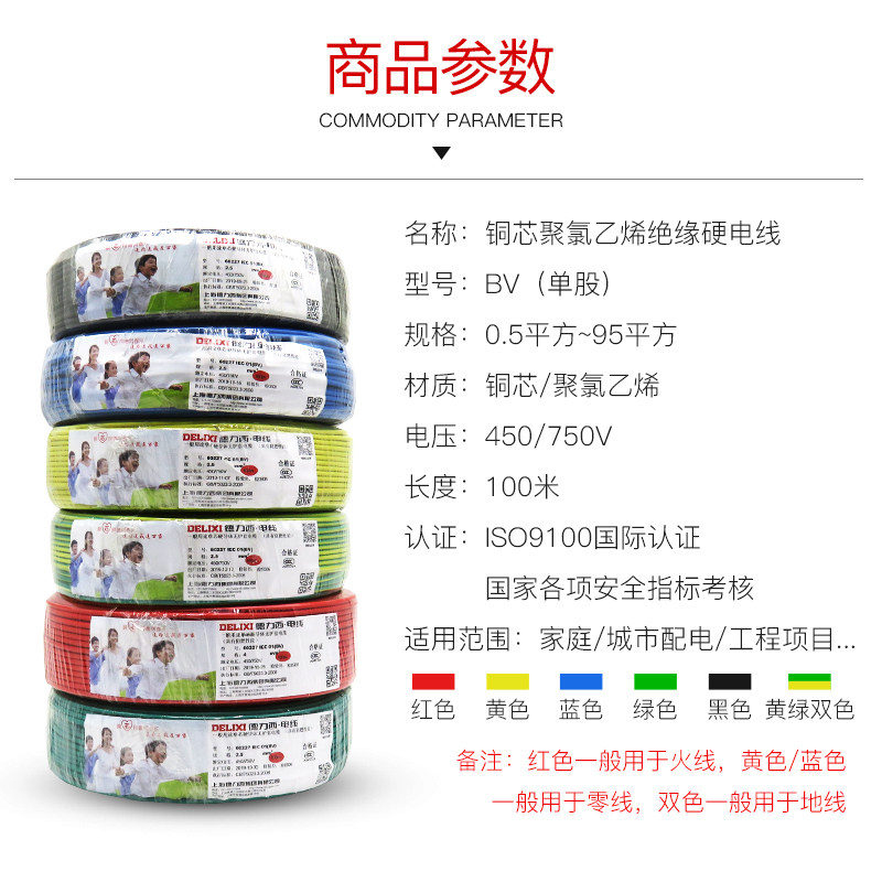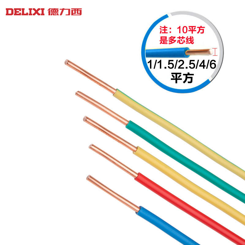 德力西家用电线电缆1/1.5/2.5/4/6/10平方铜芯BV单股硬线 100米