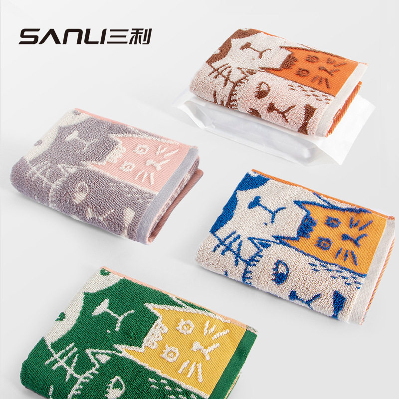 三利毛巾跨境纯棉提花猫童巾涂鸦儿童洗脸巾31*60中巾新款68g面巾