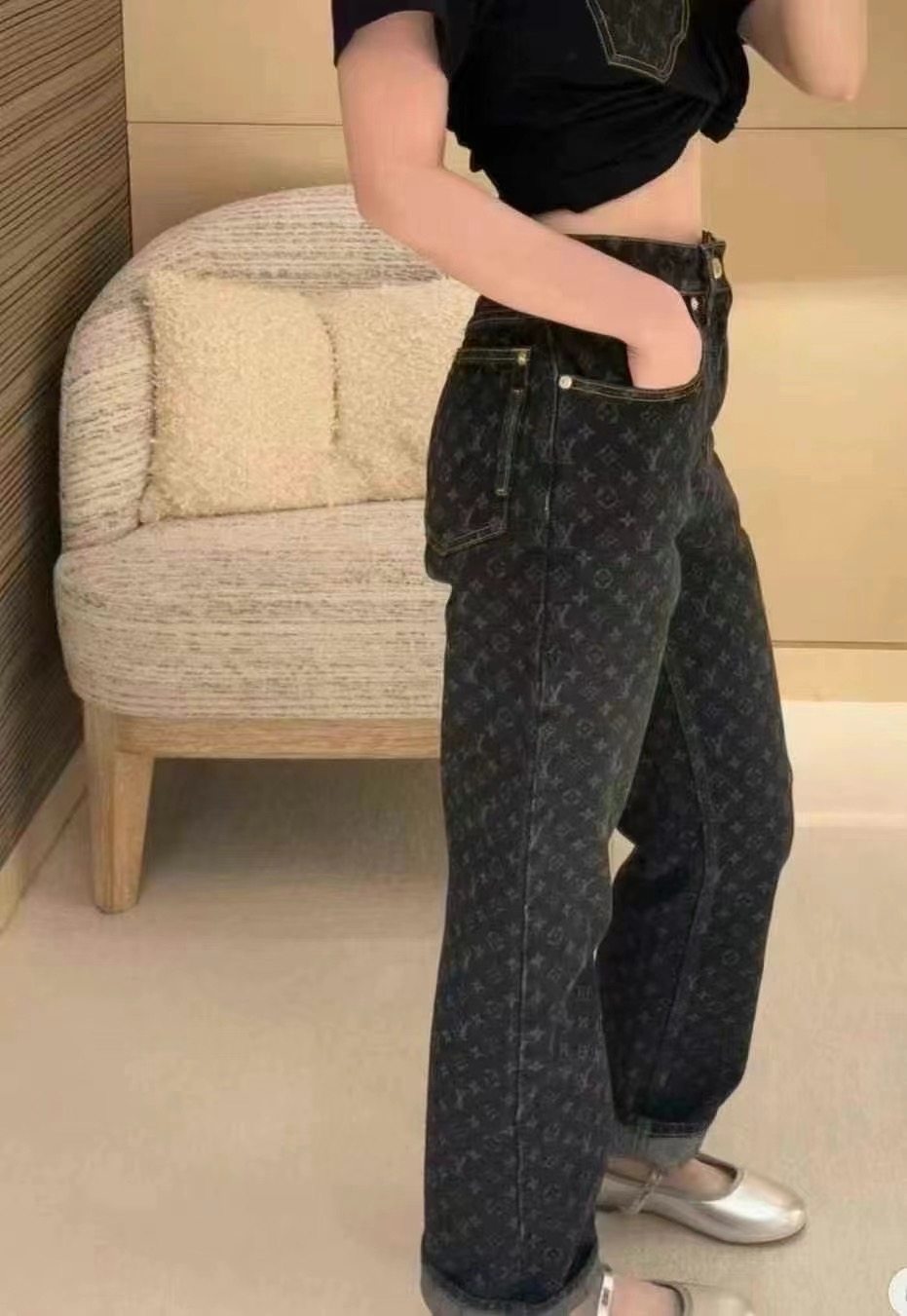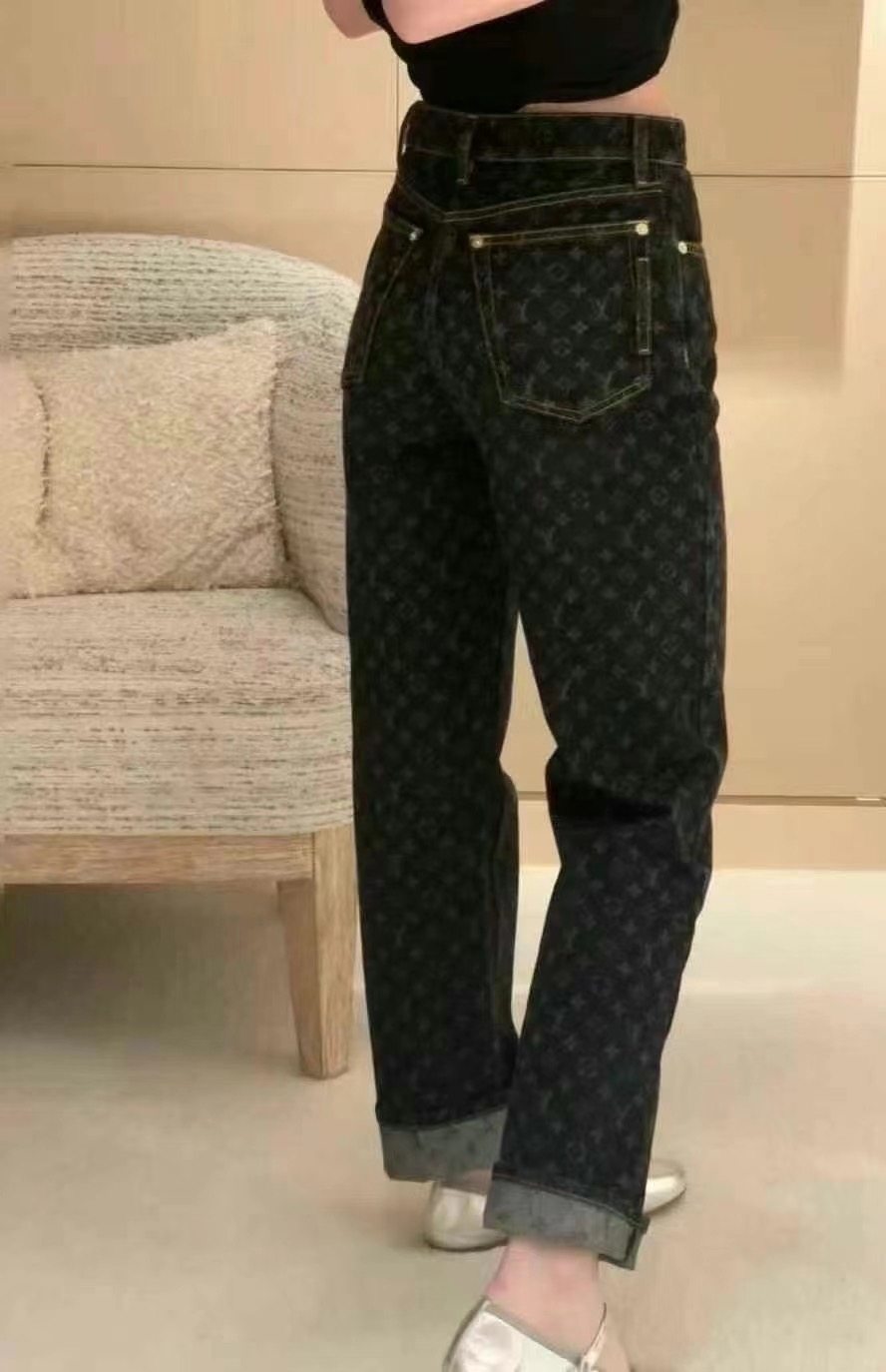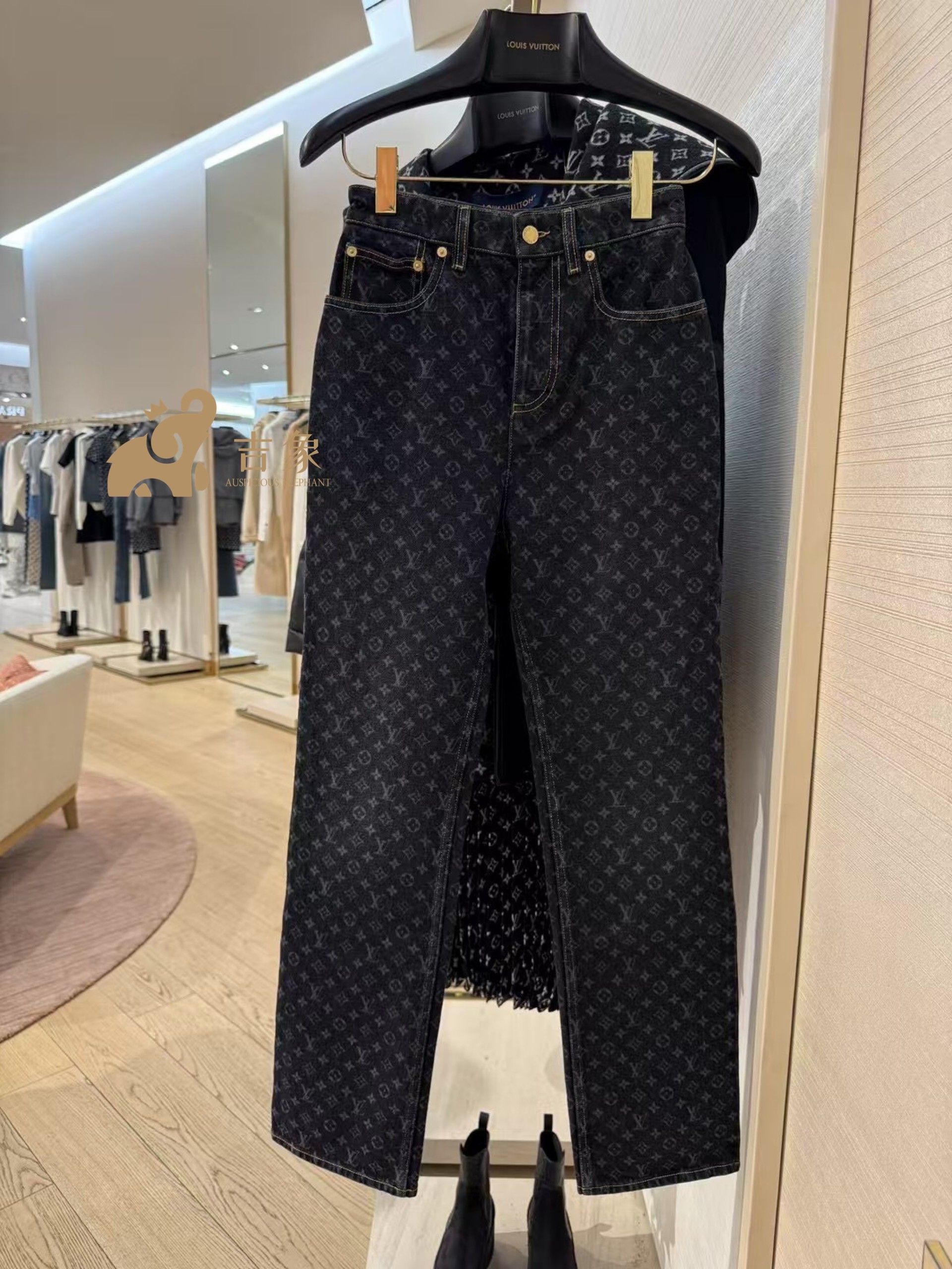 LV/路易威登2025新款女装黑色Monogram印花直筒牛仔裤
